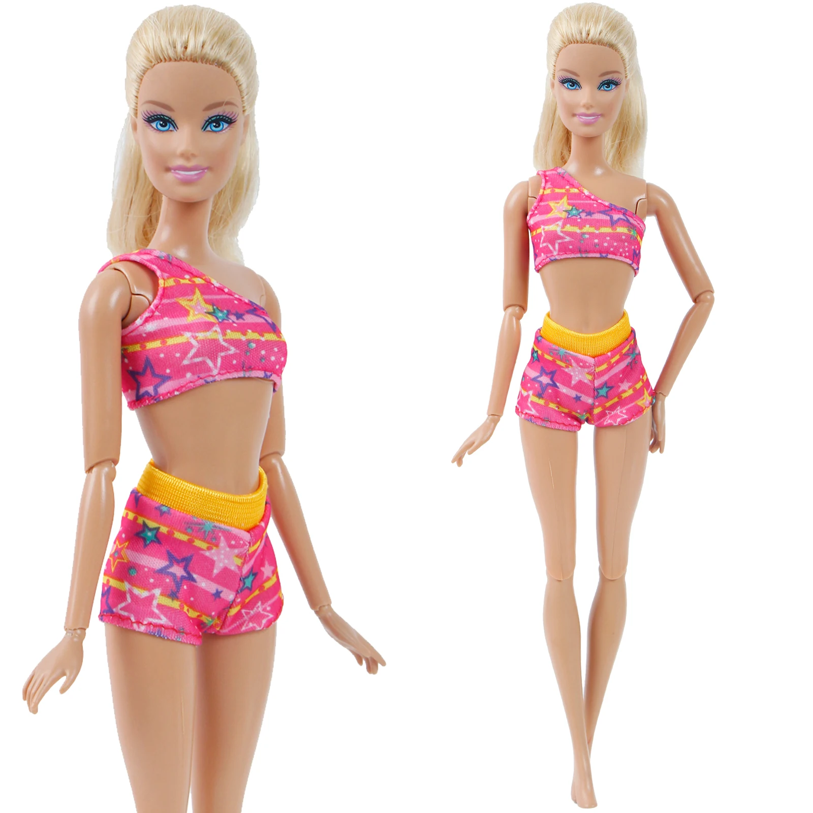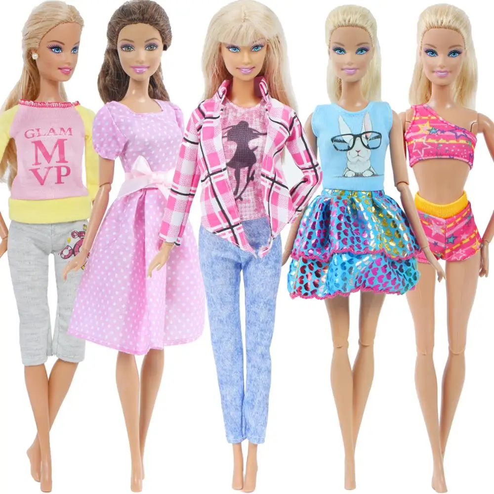 Комплект одежды для куклы Барби, комплект из 5 предметов, клетчатая рубашка, жилет, брюки, платье, купальник, спортивная одежда, модная повседневная одежда, аксессуары для кукол Барби