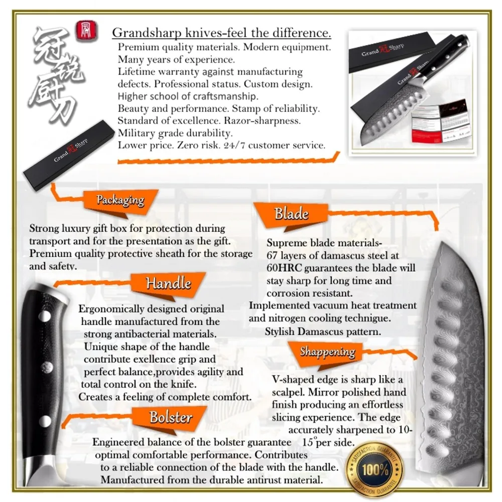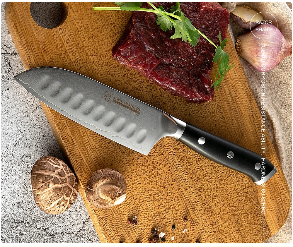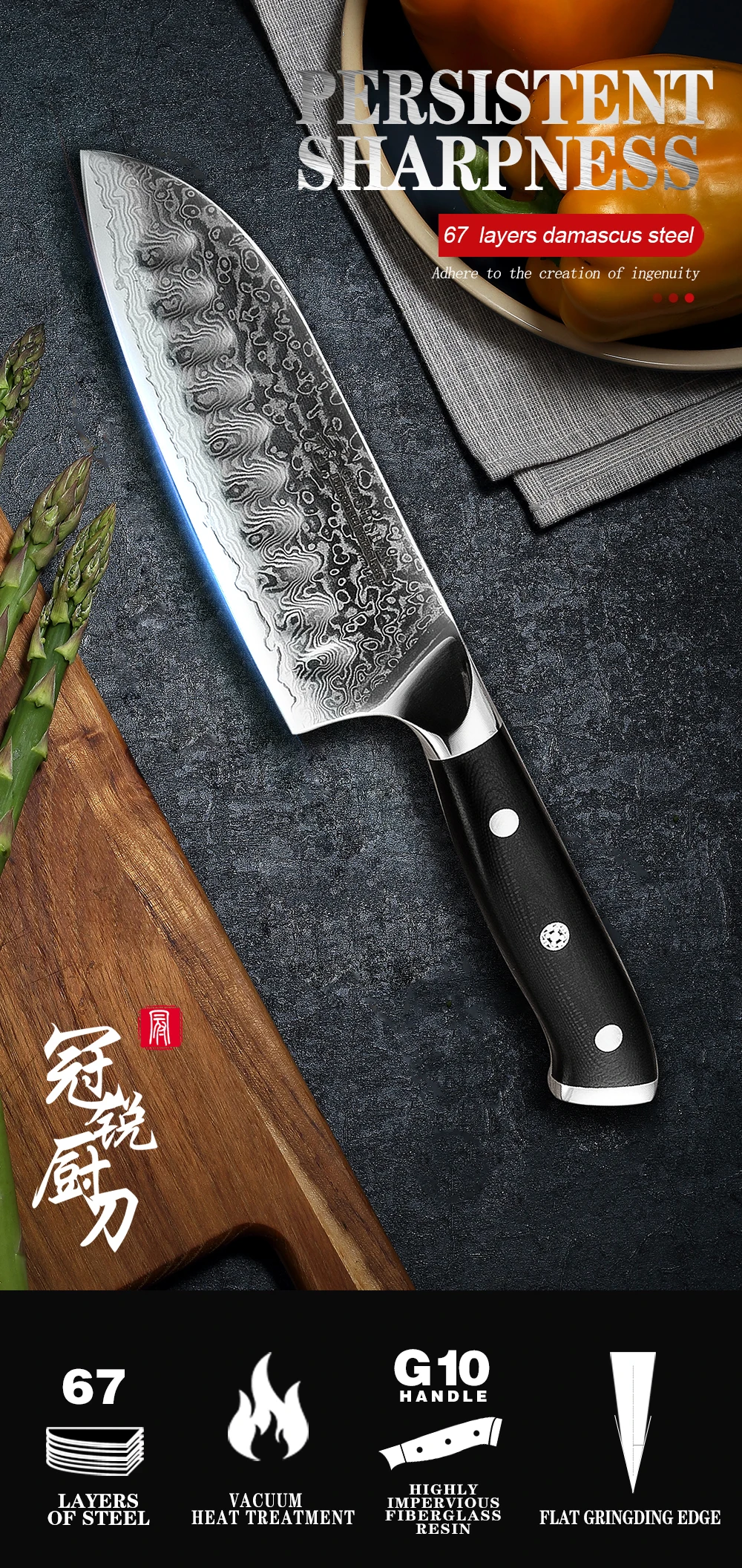 Профессиональный японский дамасский кухонный нож GRANDSHARP, 5 дюймов, сантоку VG10, 67 слоев из нержавеющей стали, японские Дамасские кухонные ножи