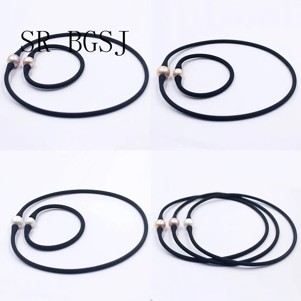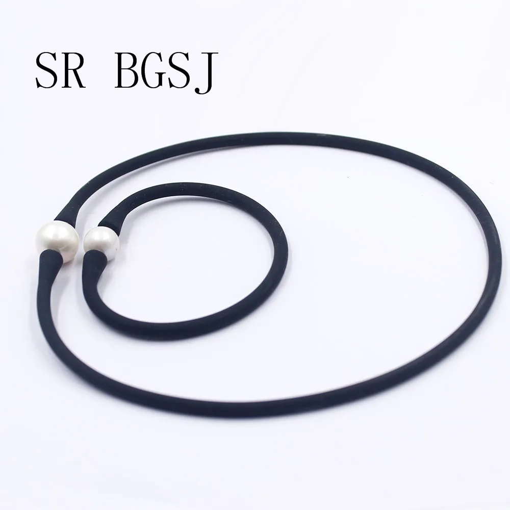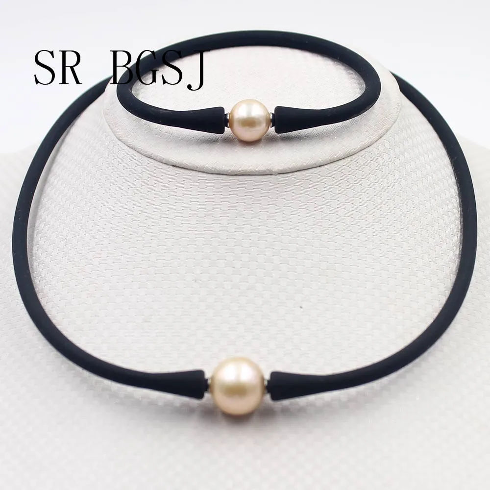 Бесплатная доставка, культивированные жемчужные бусы и эластичная силиконовая резина, браслет, ювелирный набор