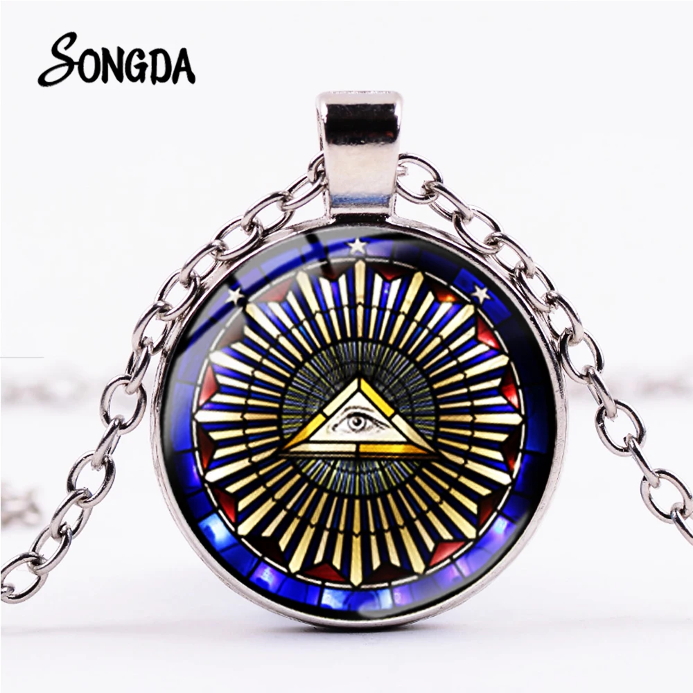 Винтажное ожерелье с изображением пирамиды глаз, масонский компас, символ G, стеклянный купол, подвески, классическое ожерелье с цепочкой