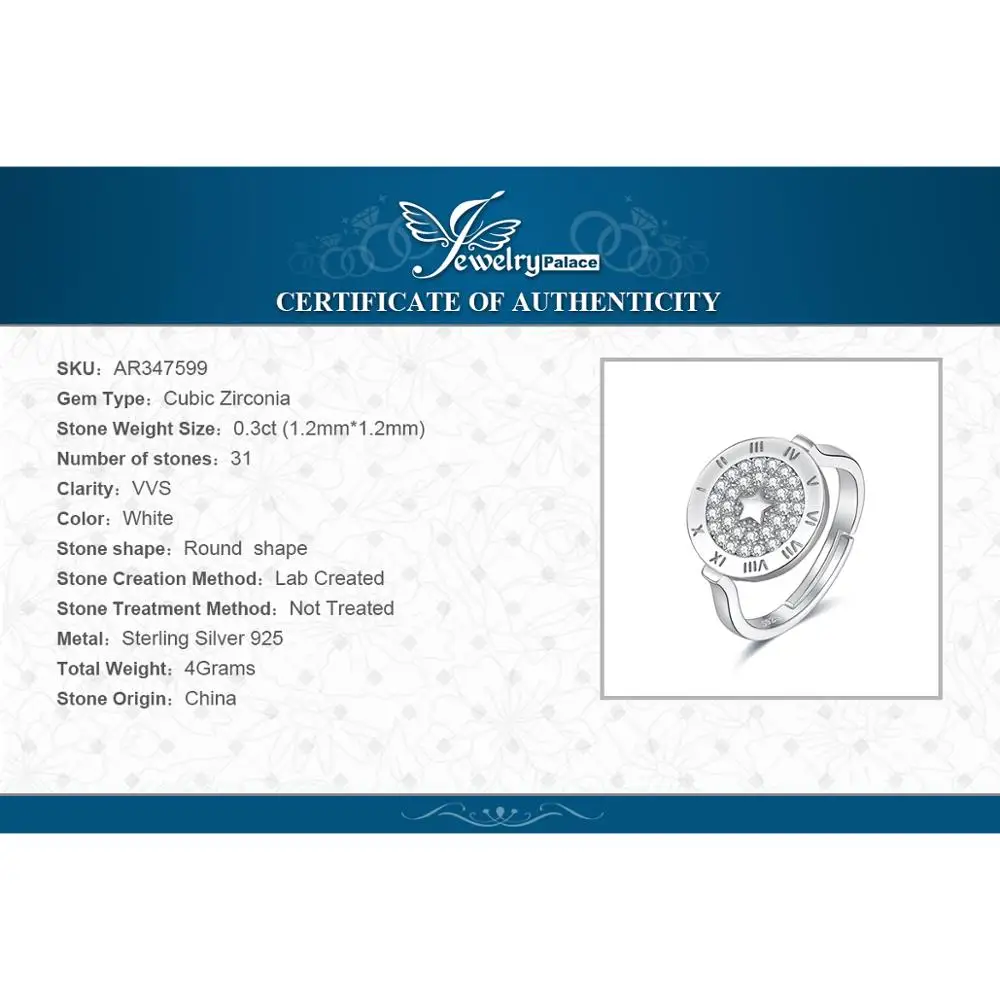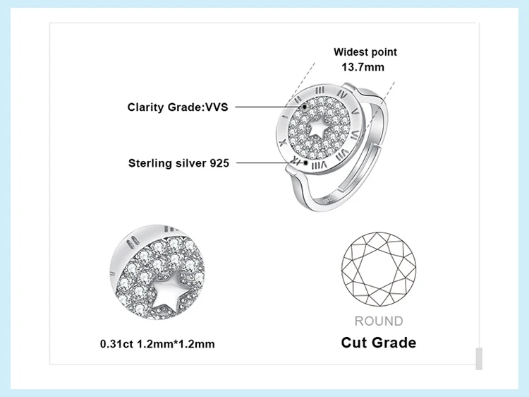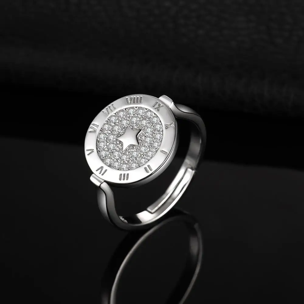Roman numerals and star symbol showcase a trendy style of Jewelry kind. 925 sterling silver is shimmering at this circular cocktail ring, adorned with micro round cubic zirconia for eye-catching elegance.