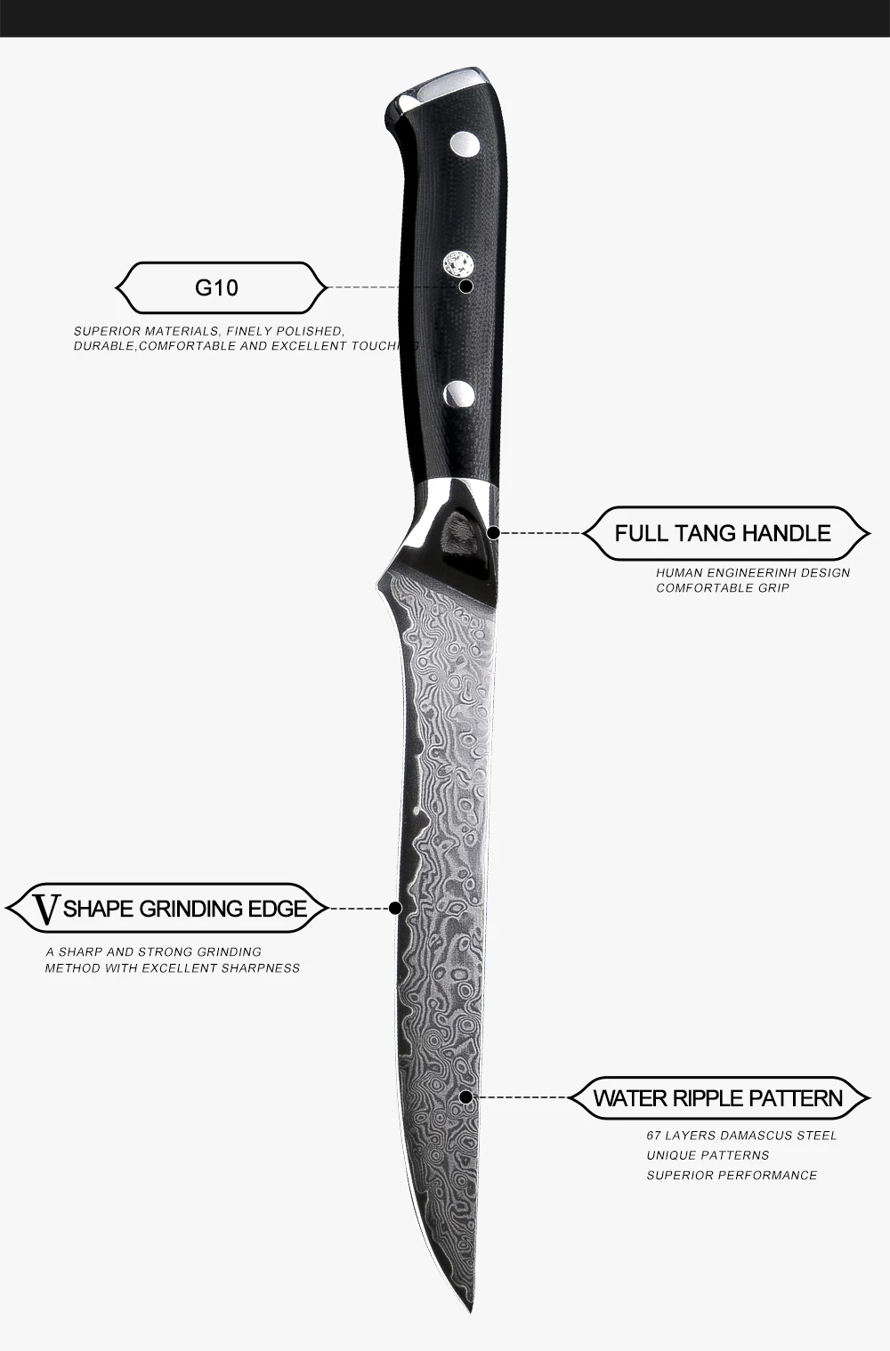 * Ручка G10, прочная, нескользящая, легко моется, удобна и красива.