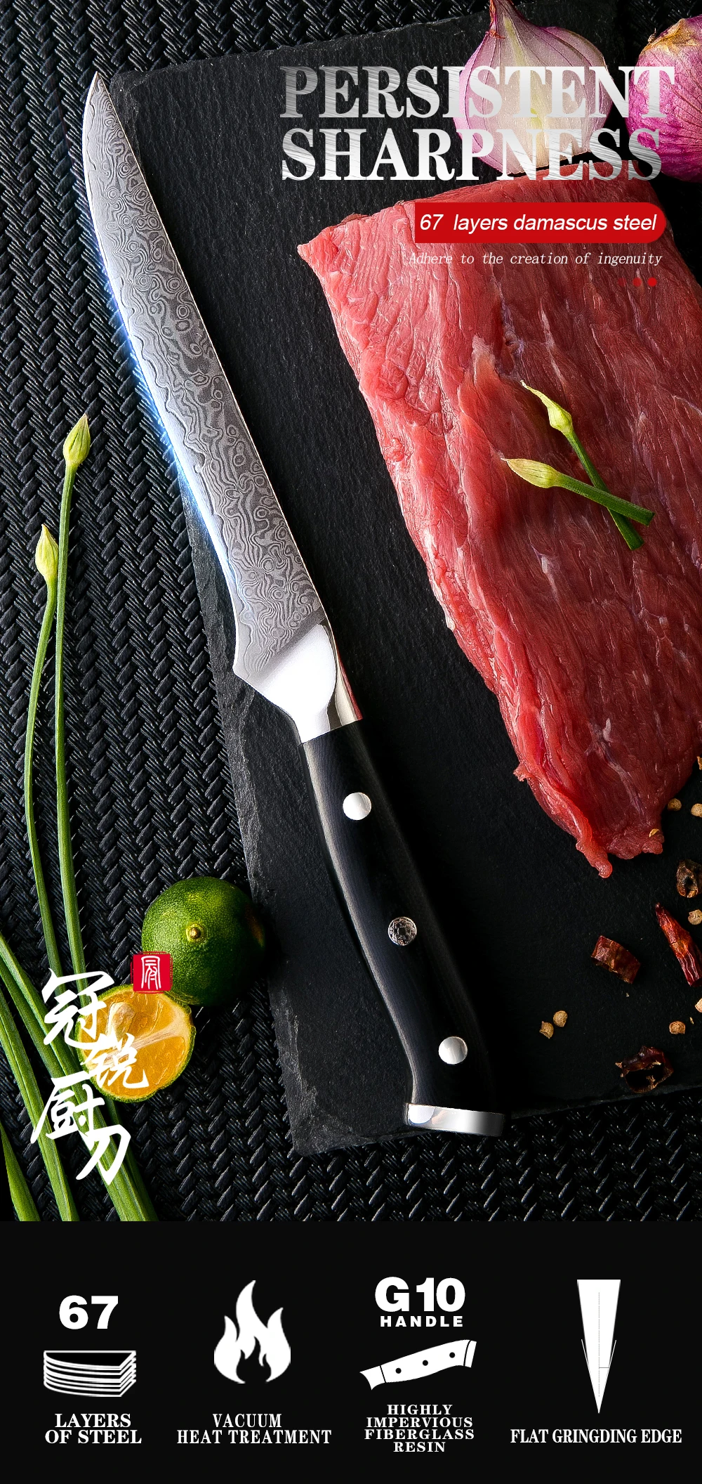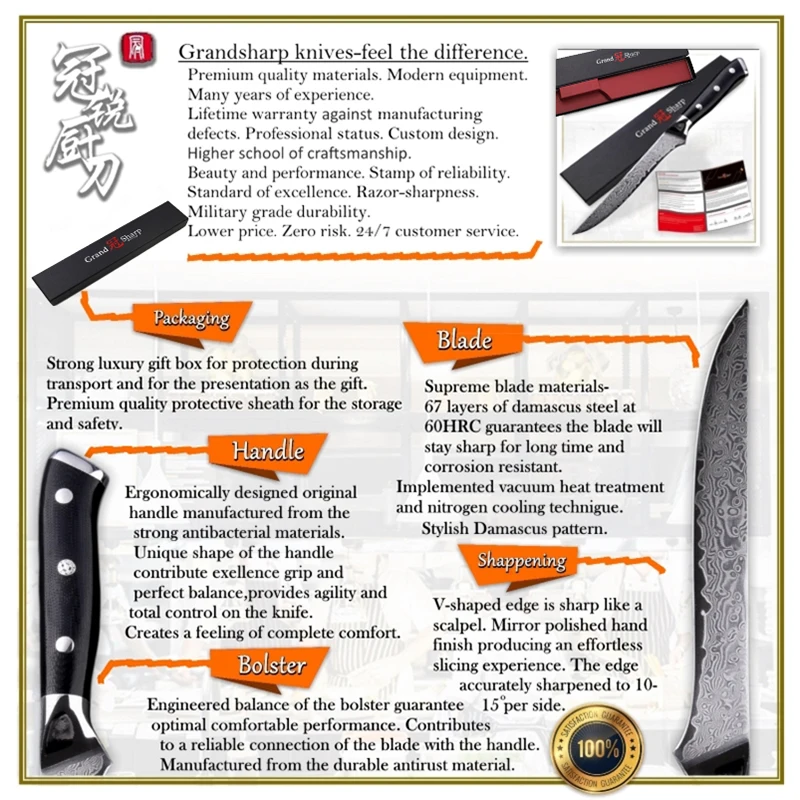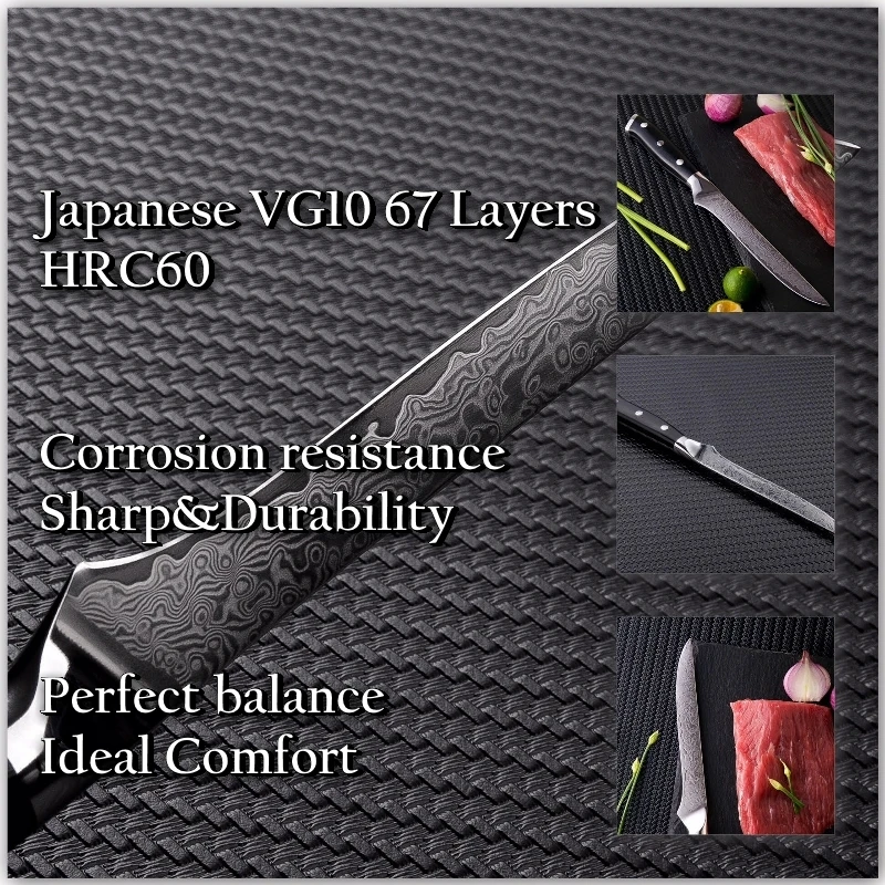 Изготовлен из 67-слой дамасской Сталь импортируется из Японии. VG-10 стальной режущий сердечник;