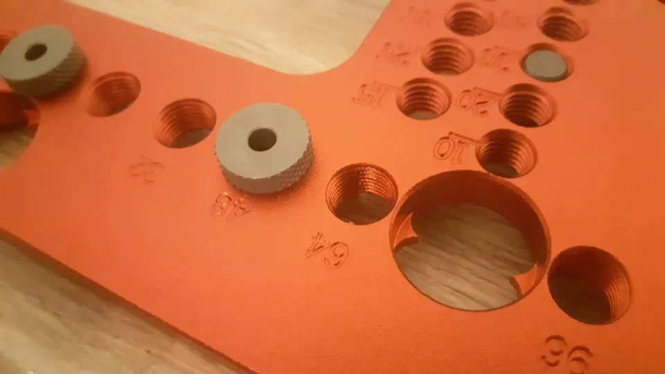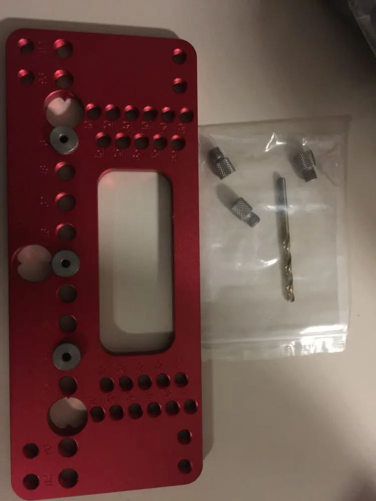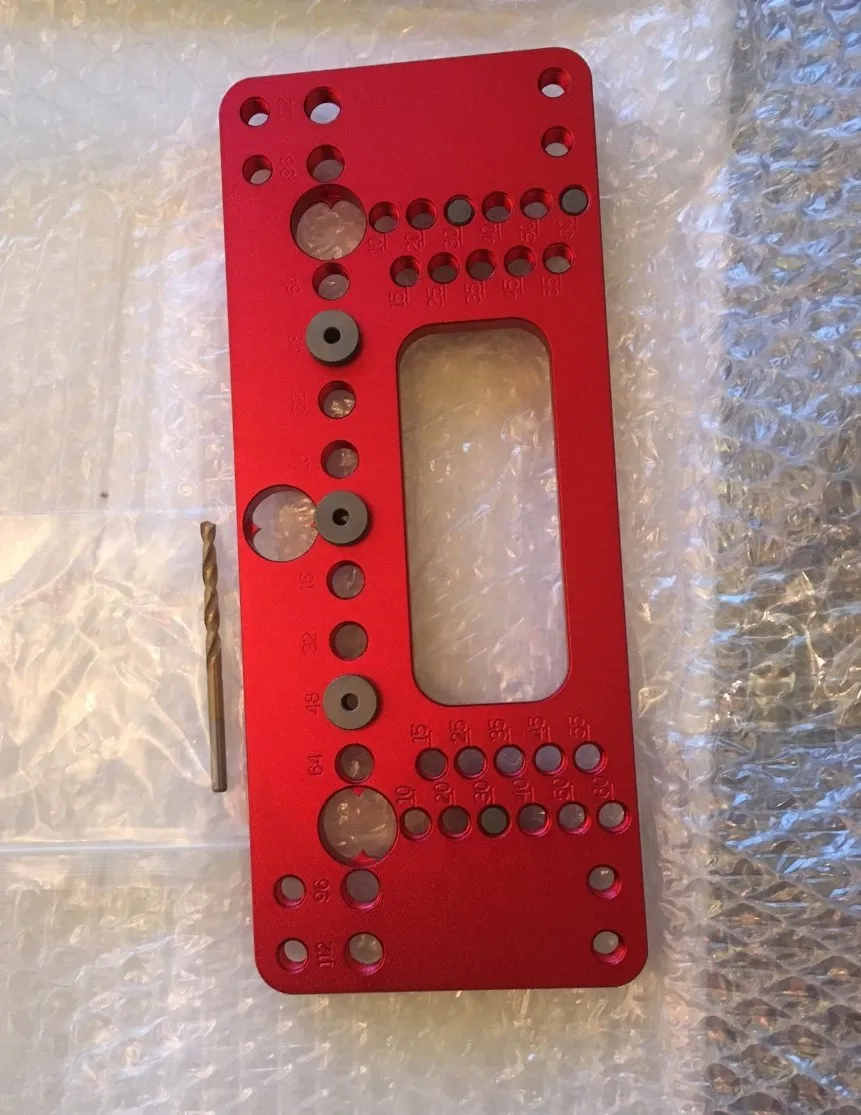 Все самое лучшее. Время доставки было хотя и долгим, но в объявленной оправе. Шаблон безупречно работает на мебельных ручках при сверлении сетки. Резьбовая втулка также безупречно работает в Анодированной алюминиевой пластине. Поздравление хуби