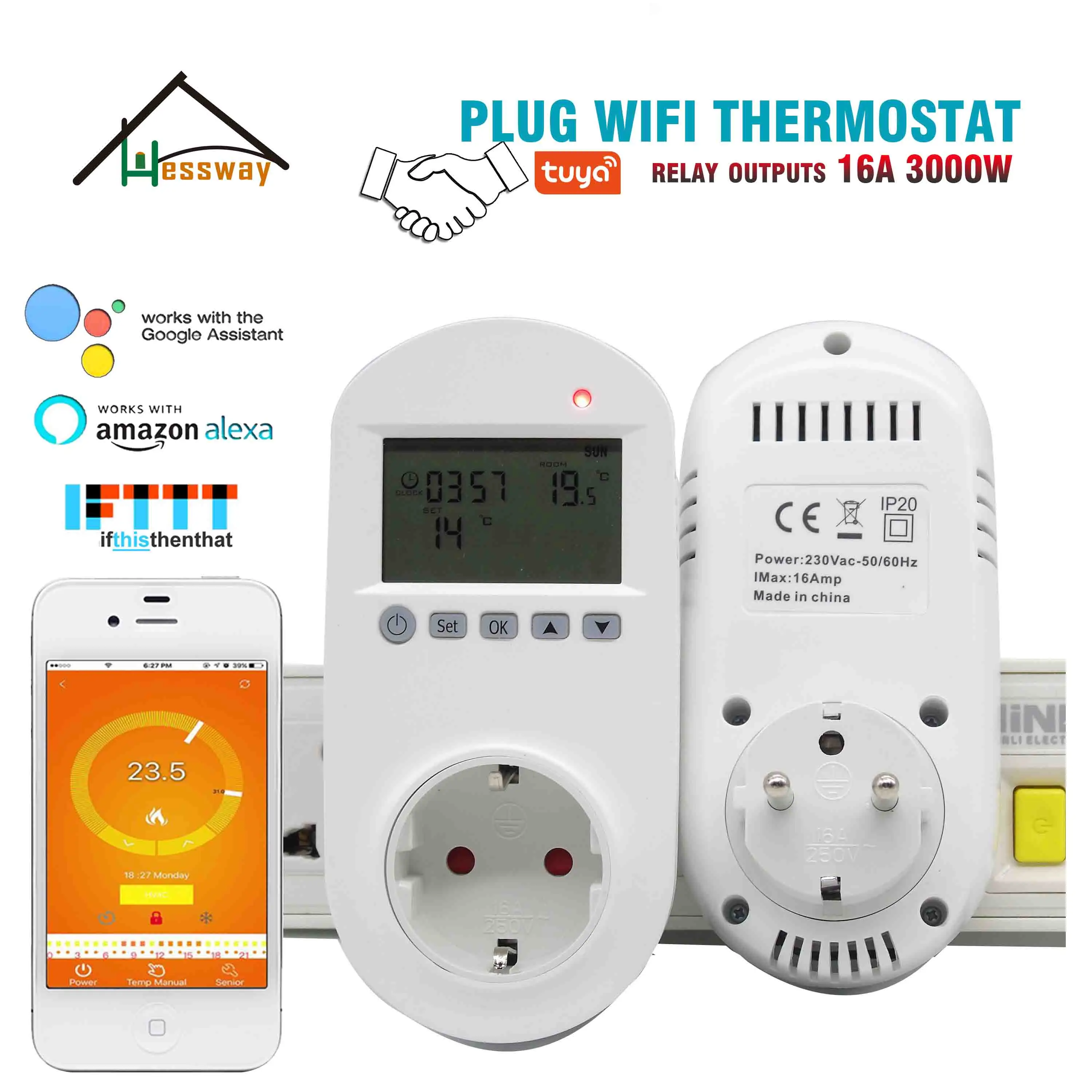 HESSWAY TUYA wifi термостат Электрический для штепсельной вилки EU 16A 3 кВт инфракрасный провод, теплый пол
