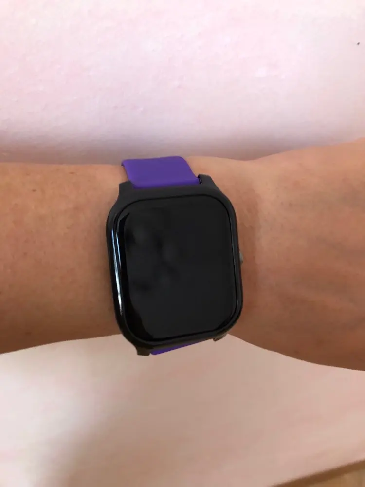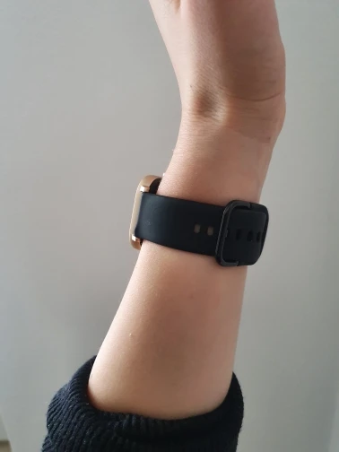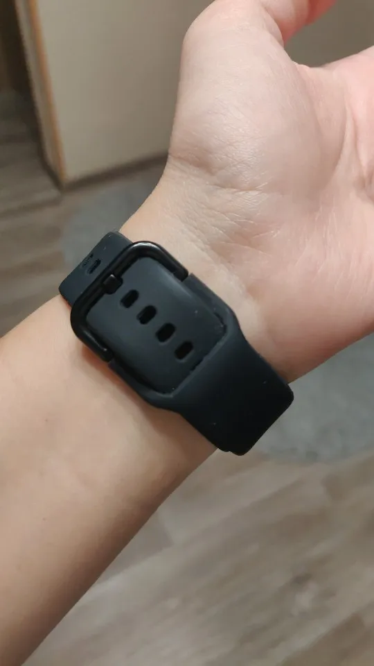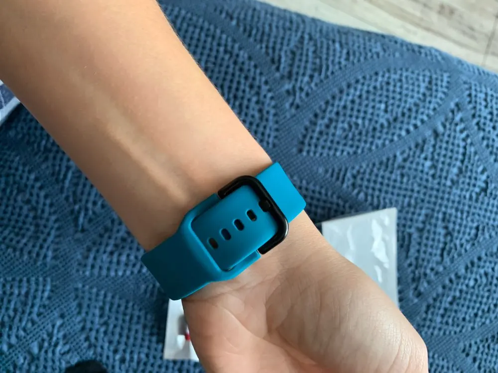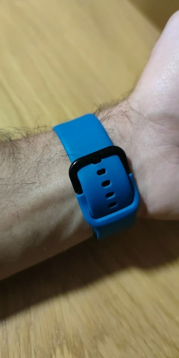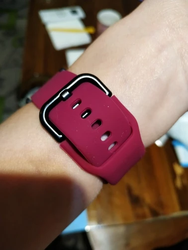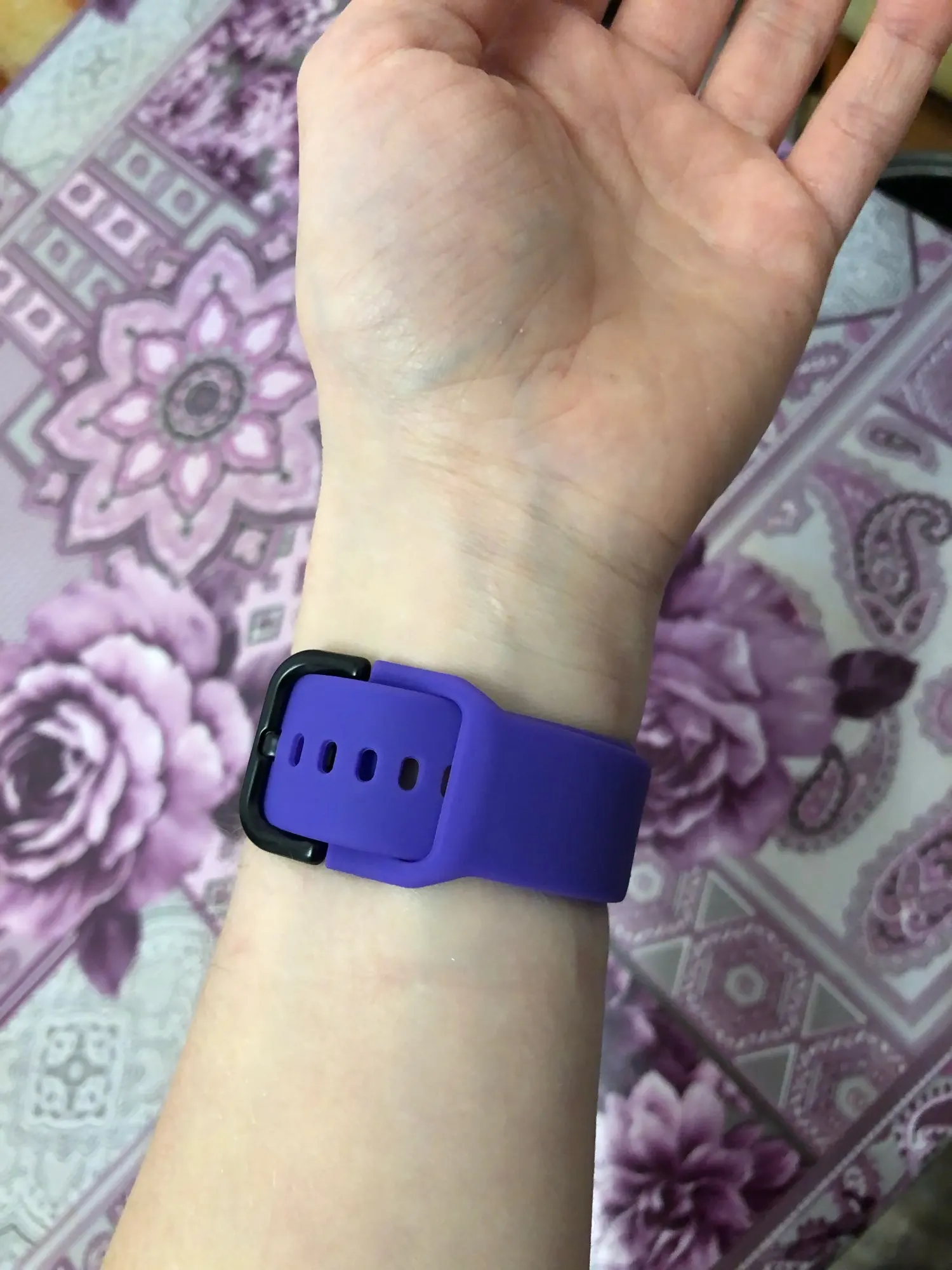 Цвет супер, хорошее качество силикона. По длине на пару миллиметров больше чем оригинальный, но отверстий в ремешке меньше, застегнула на последнюю и немного великоват, но я люблю когда не очень плотно к руке прилегает.
