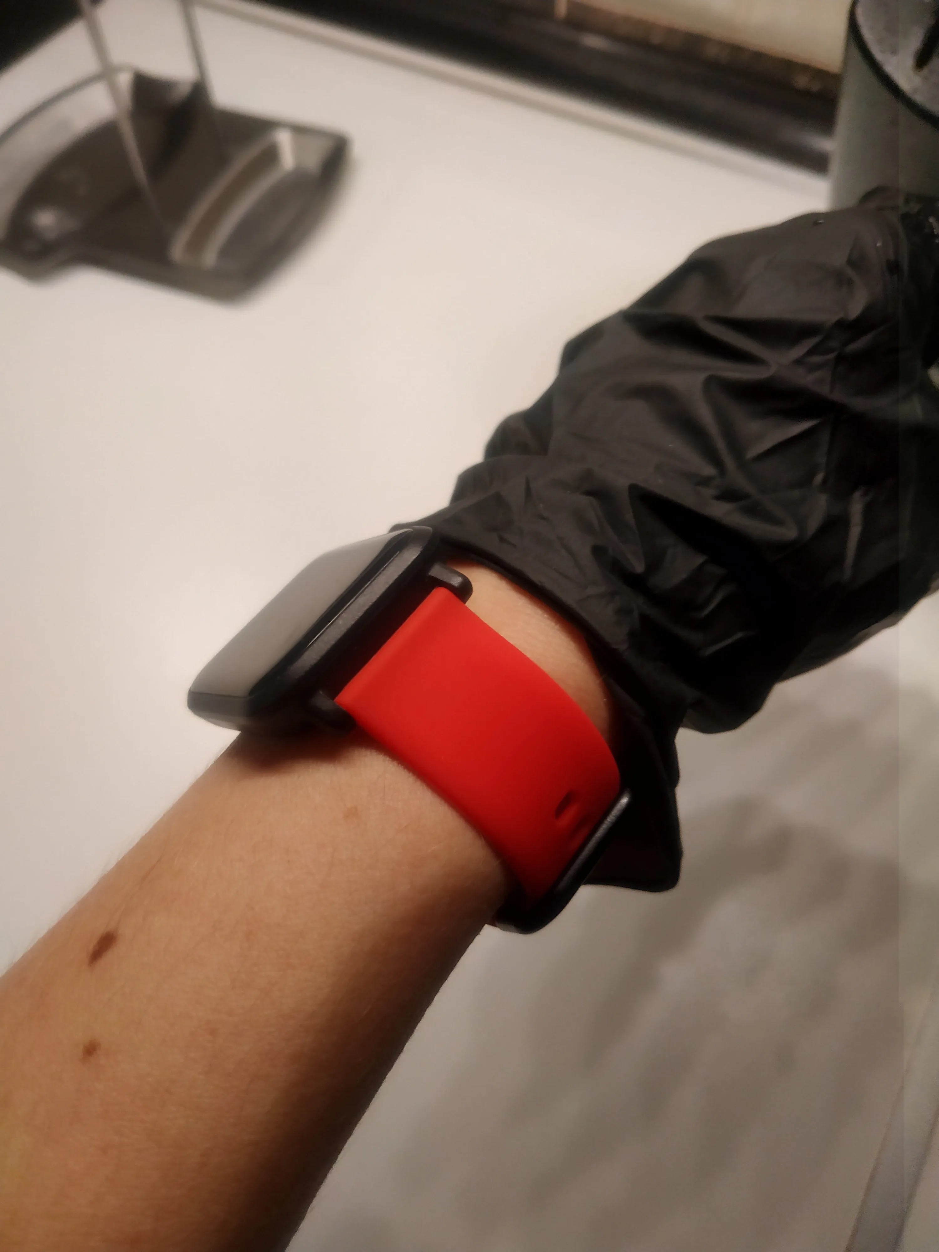 Очень хорошее качество силикона, гораздо плотнее, чем в оригинальном ремешке и очень приятный на ощупь. Размер S на 16 см запястье подошёл идеально.