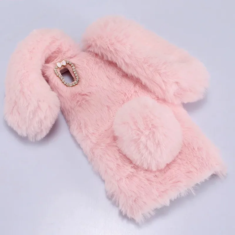 Теплый чехол из кроличьего меха для iPhone 7 8 Plus X XS Max XR Sam...