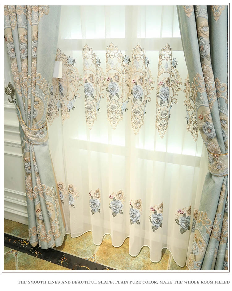 Европейские и американские роскошные белые и кремовые вышитые шторы...