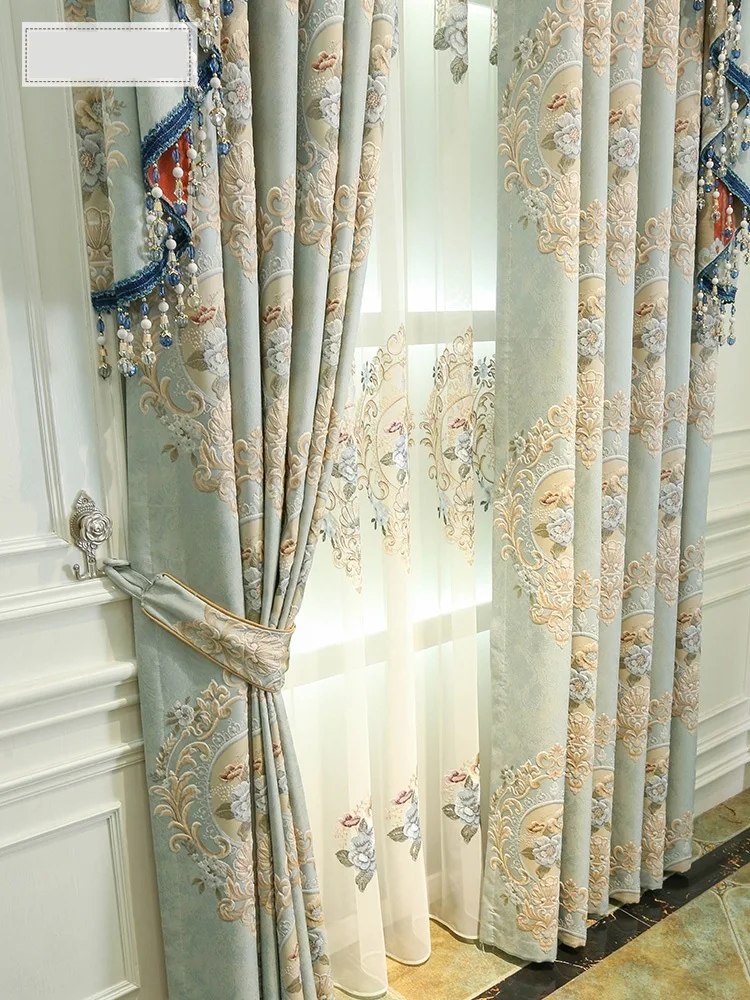 Европейские двойные жаккардовые занавески для гостиной, плотные зат...