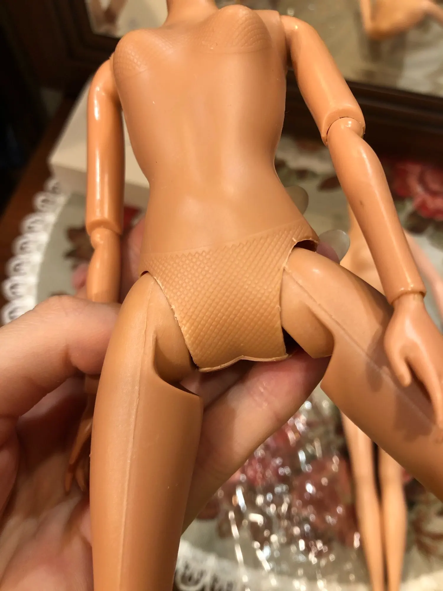 Тело неплохое, конечно есть недочёты, типа небольших потертостей на туловище, есть небольшие вкропления на ногах, но это все терпимо. Эта партия тел лучше чем была около года назад, здесь руки ровнее из за этого кажутся длиннее, раньше были как то неестественно согнуты и казались короче. Специально раздела куклу что бы показать сравнение. В новом теле брюнетка. Упаковка надёжная.