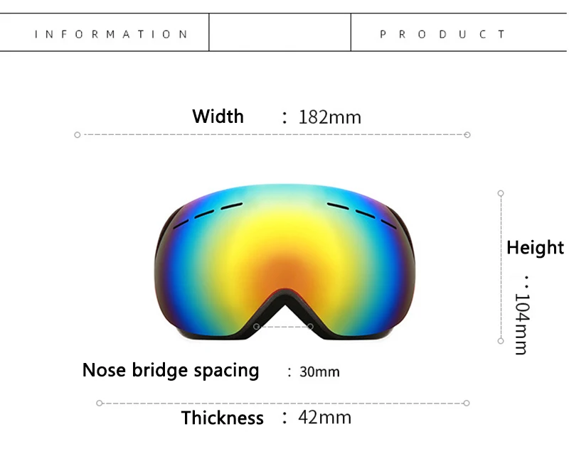 Тип товара: лыжные очки Применимый Пол: унисекс Размеры: Универсальный Размер Цвет: черный и красный, черный и серебристый, черный и серый, красный, синий, белый и зеленый Материал: Рама: термопластичный полиуретан Объектив: двойной противотуманный Функция: Пуленепробиваемый, песочный, защита глаз, ветрозащитный, противотуманный Применимые сцены: катание на лыжах, Велоспорт, альпинизм, сноуборд, езда и другие виды спорта на открытом воздухе. Посылка: 1 лыжные очки