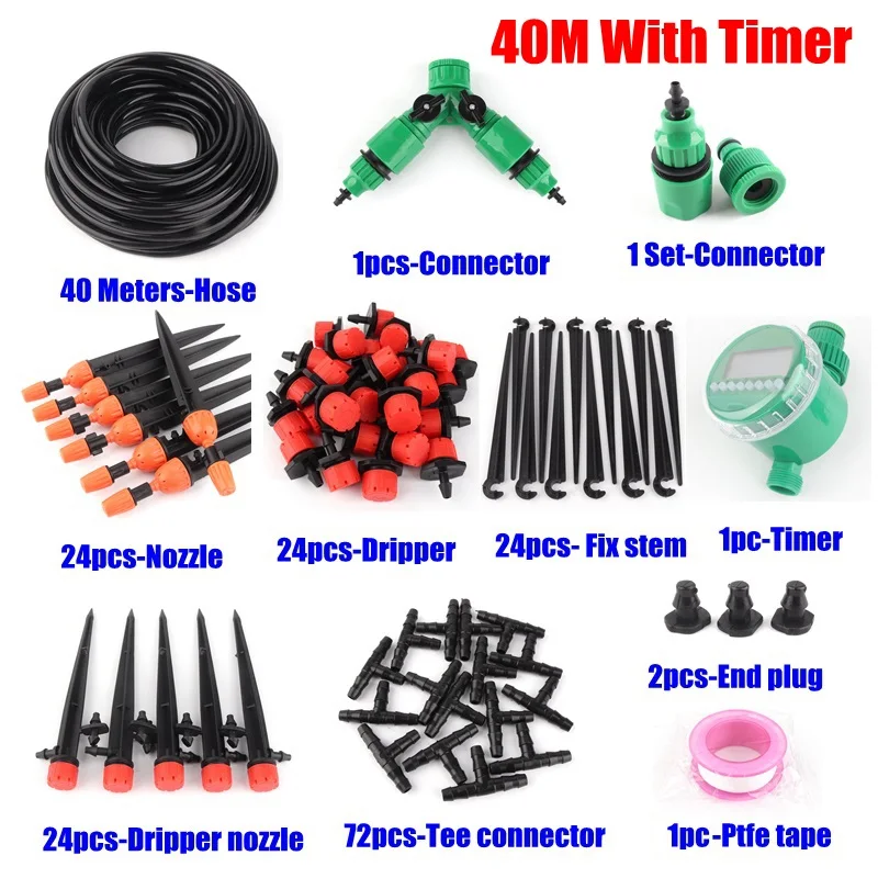 40 м автоматическая система полива сада набор капельного орошения садовые наборы для полива Регулируемый капельница распылитель сопла управления таймером