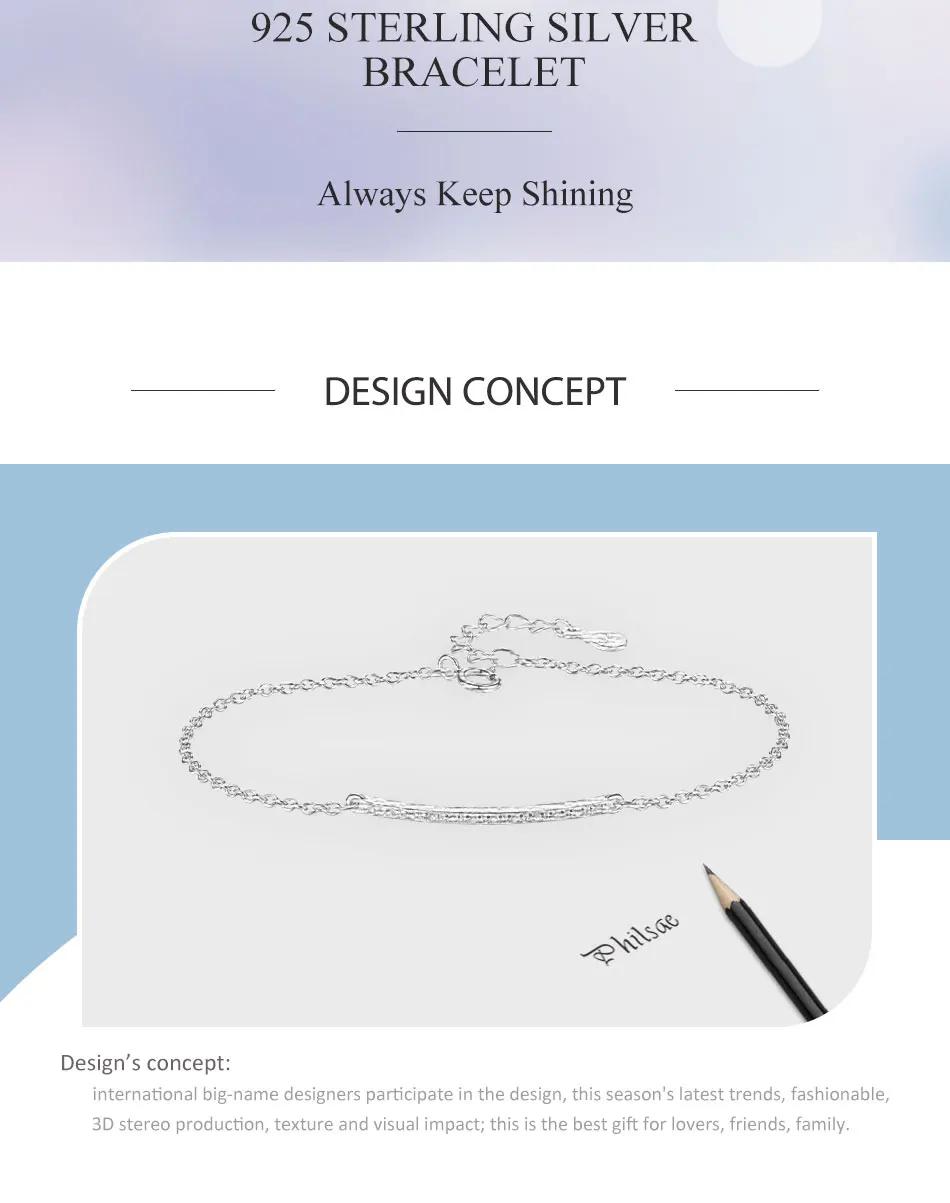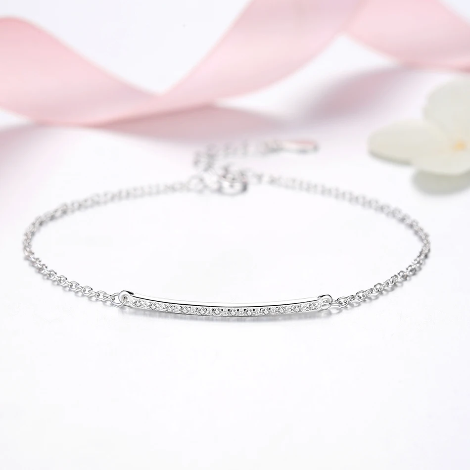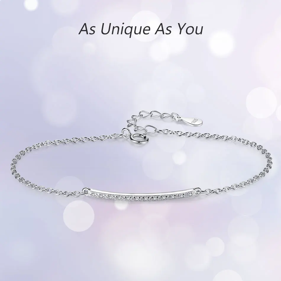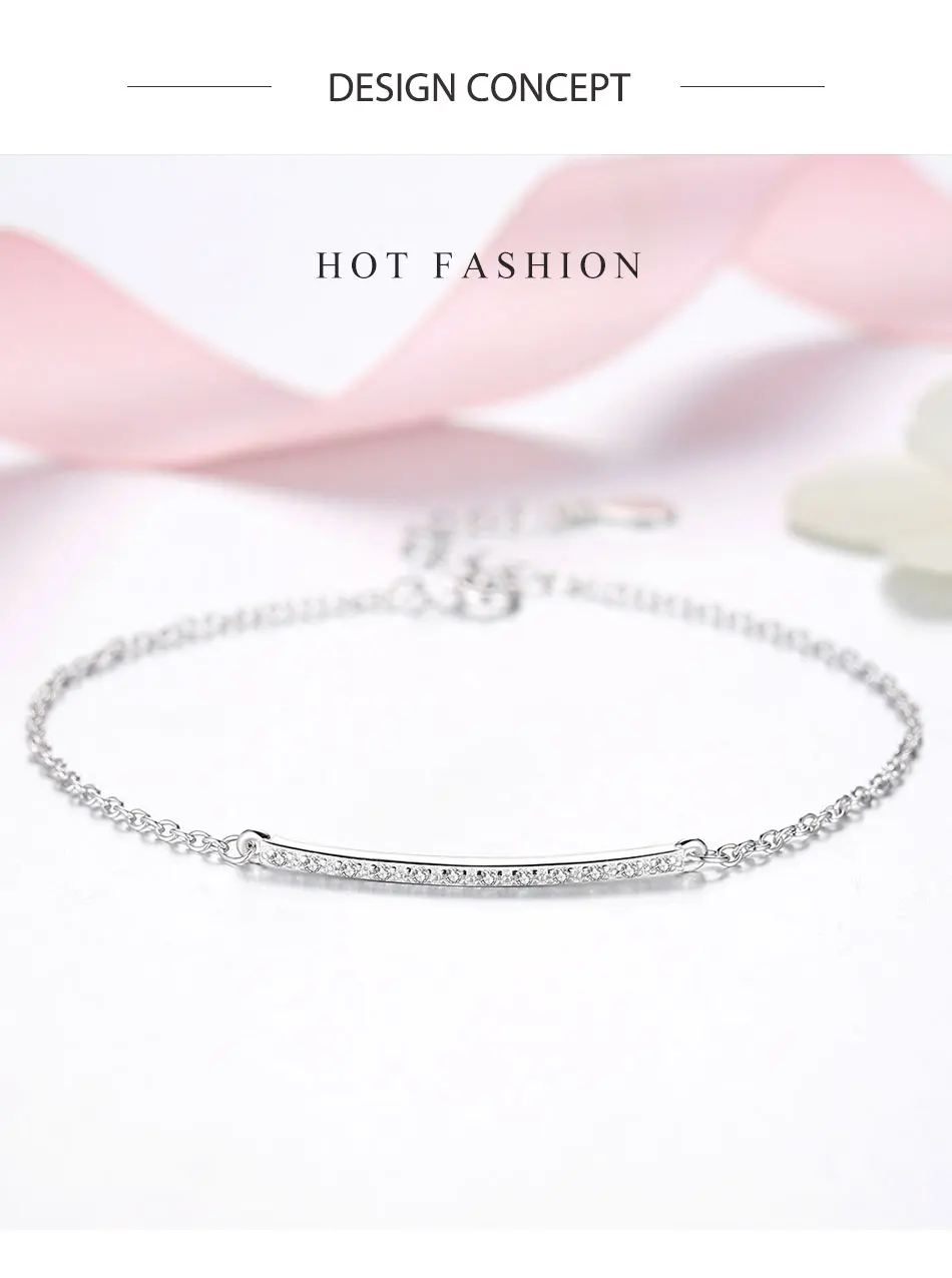 ELESHE 925 стерлингового серебра браслет с украшением в виде кристаллов Женские Простые бар палка браслет-цепочка для женщин, модное ювелирное изделие, подарок на Рождество