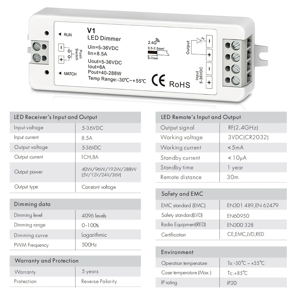 * Мини-стиль RF Диммер, Одноканальный выход постоянного напряжения.