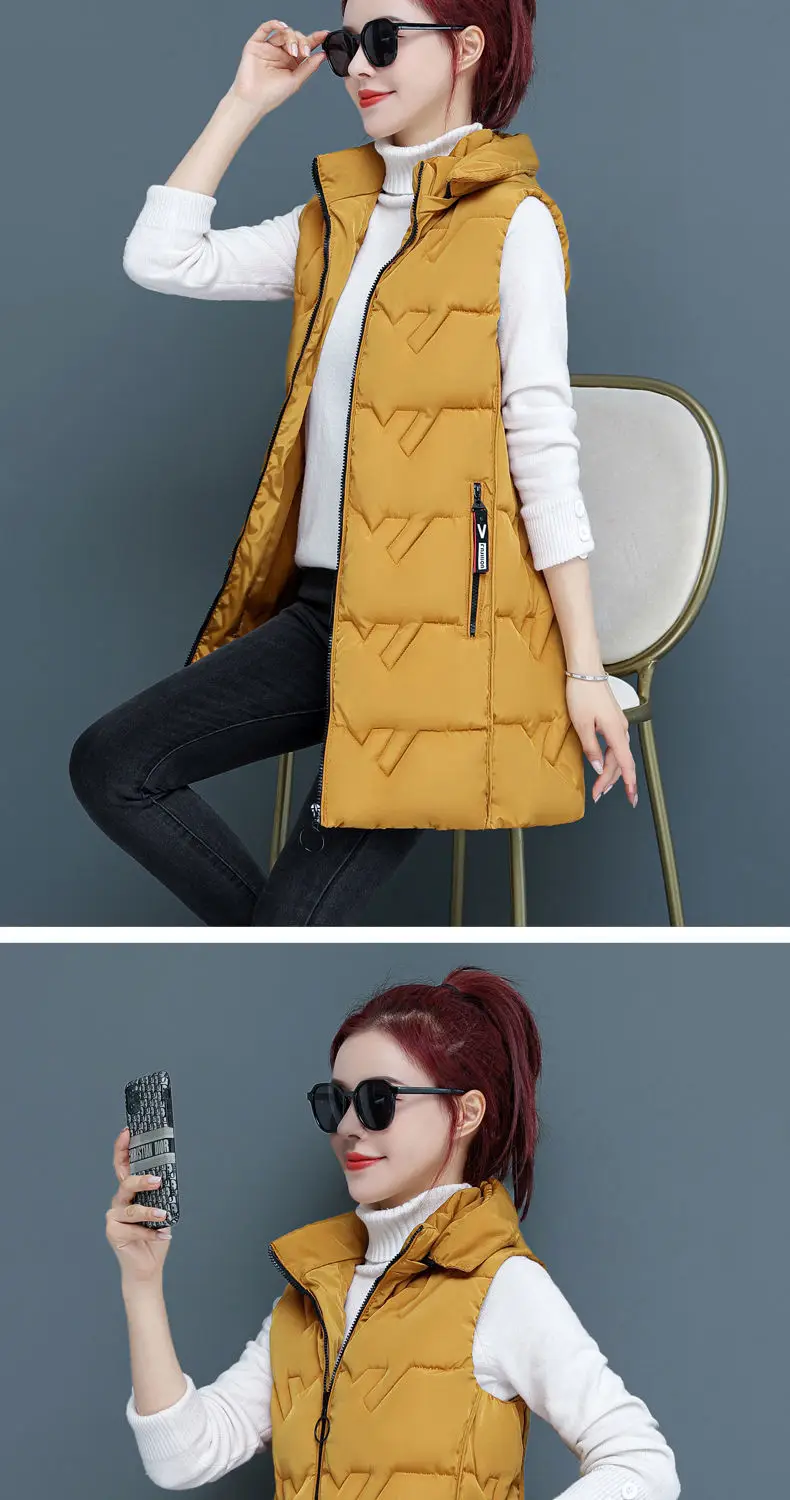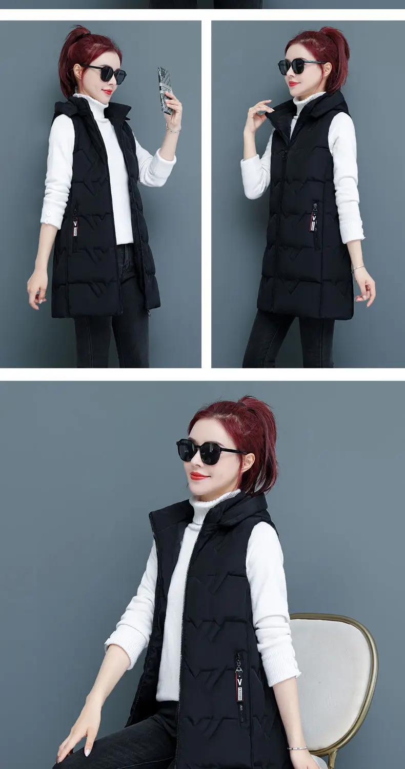 Жилетка женская зимняя куртка с капюшоном жилет со съемным капюшоном куртка жилет женский длинный жилет без рукавов женские парки, верхняя одежда размера плюс для женщин Лыжная куртка