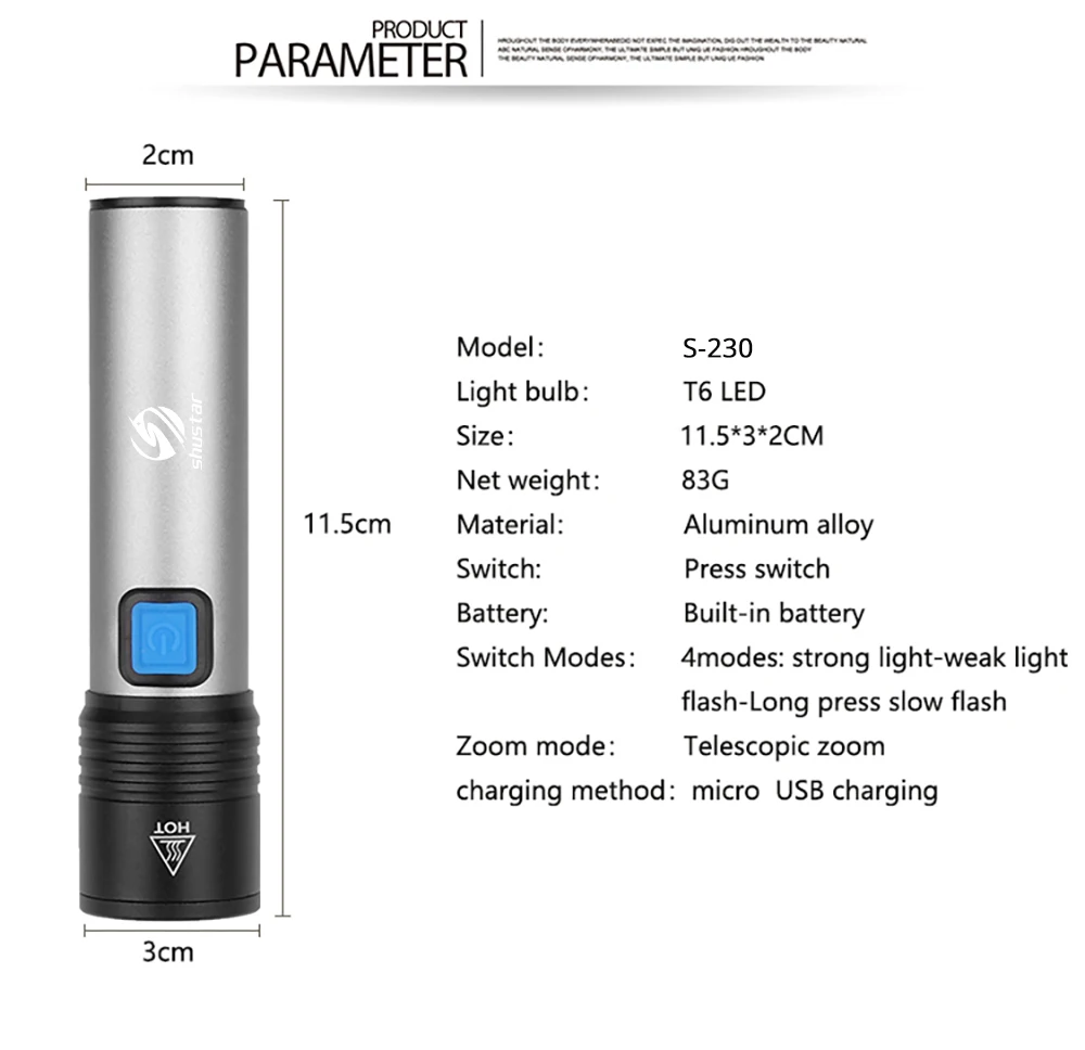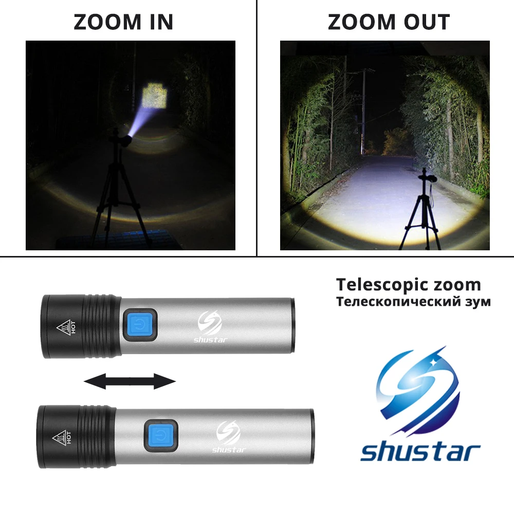 Суперяркий перезаряжаемый светодиодный фонарик водонепроницаемый фонарик 3 режима освещения масштабируемый светильник для кемпинга с светодиодом T6