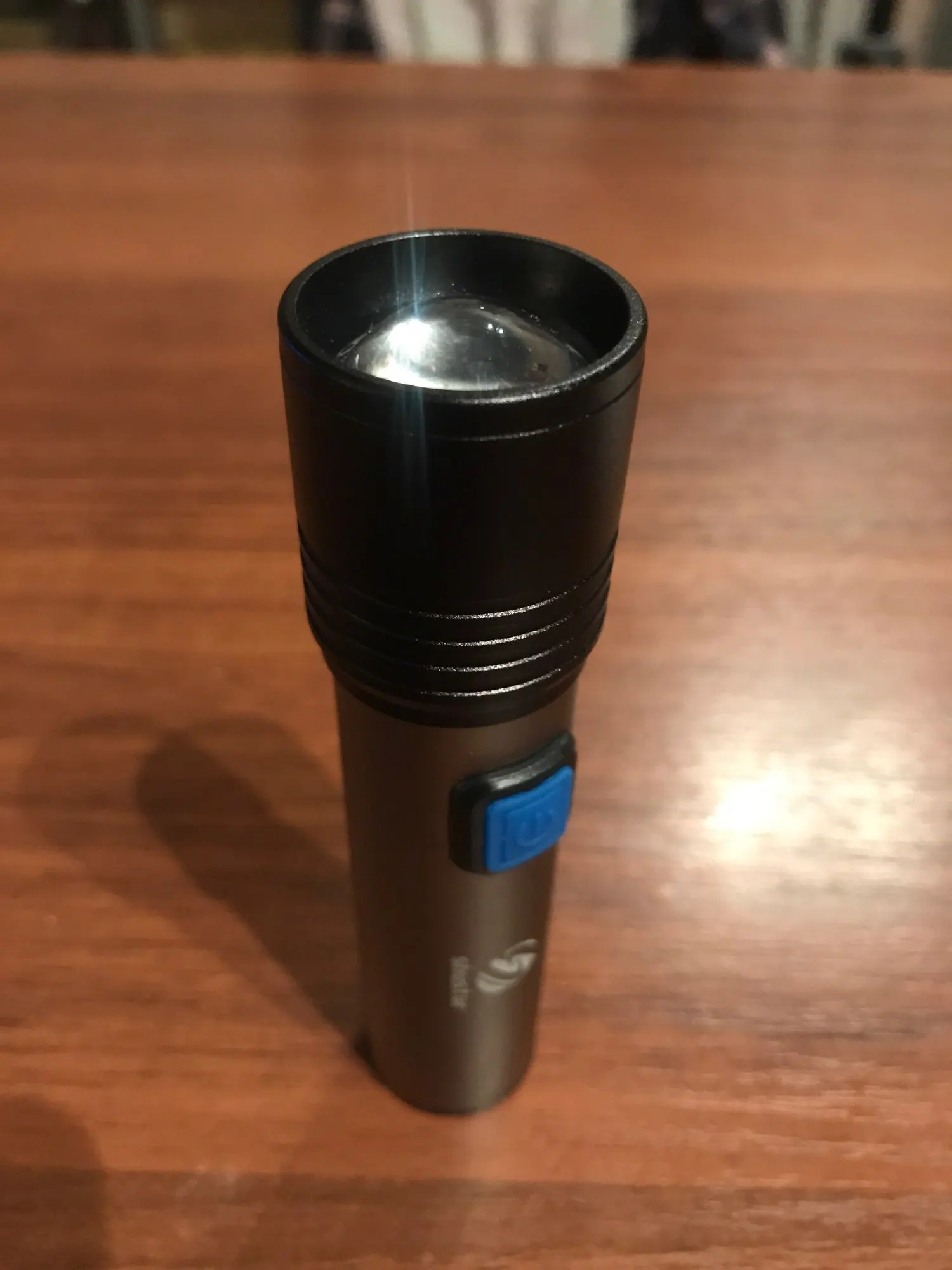 Доставка в Самару заняла 3 месяца. Трек-номер не отслеживался. Стоимость заказа ₽328,38. Фонарик светит отлично: яркий дальний круглый, яркий прямоугольный, средняя яркость и флэш (мигающий). Сам фонарик небольшой, портативный, удобно лежит в руке. Заряжается от micro-usb. При зарядке подсвечивается кнопка (индикация).