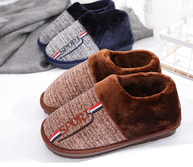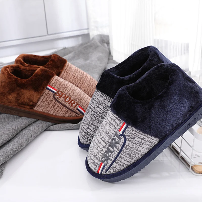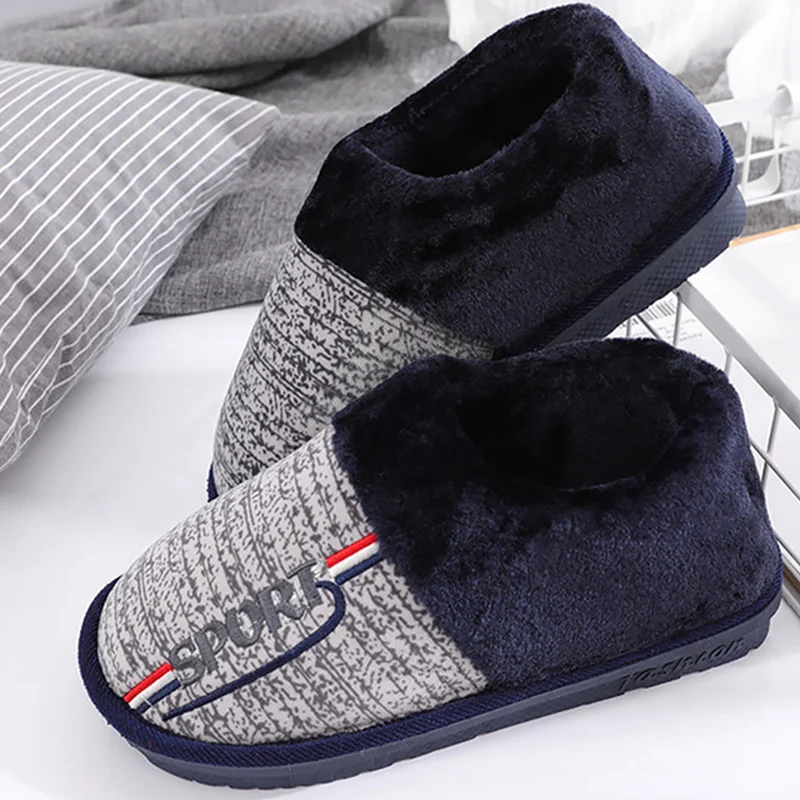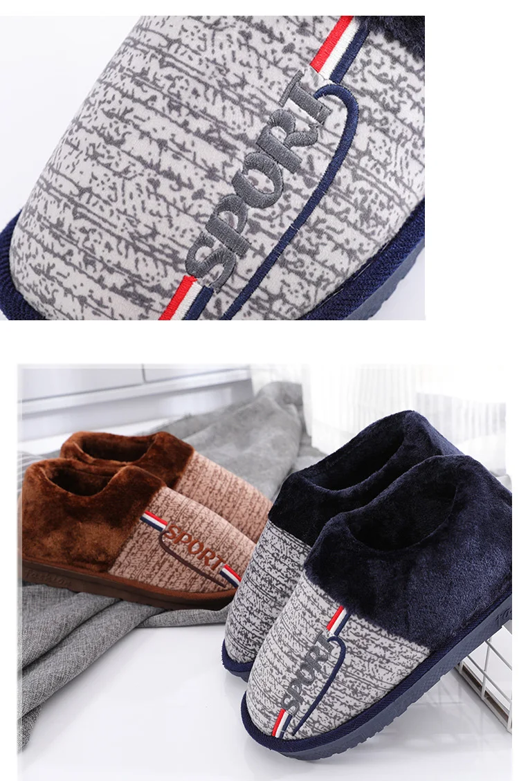 Зимние мужские тапки, большие размеры 45-50, модные теплые домашние тапки с мелким узором, мужские однотонные плюшевые домашние тапки из ПВХ