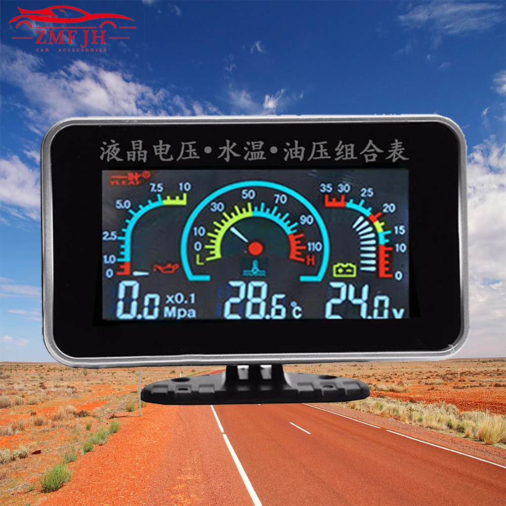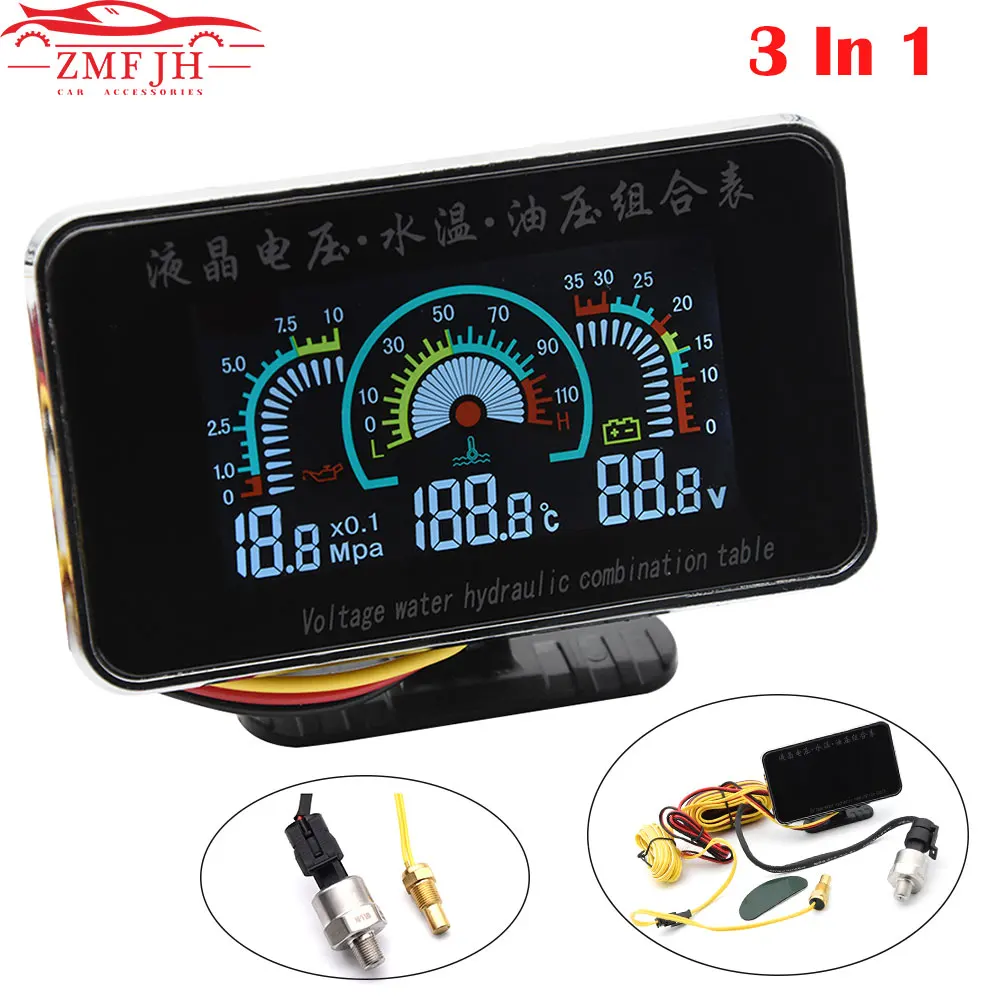 Универсальный Автомобильный датчик давления масла, 3 в 1, 12 В24 В, ЖК-дисплей, температура воды комбинированная Таблица с датчиками