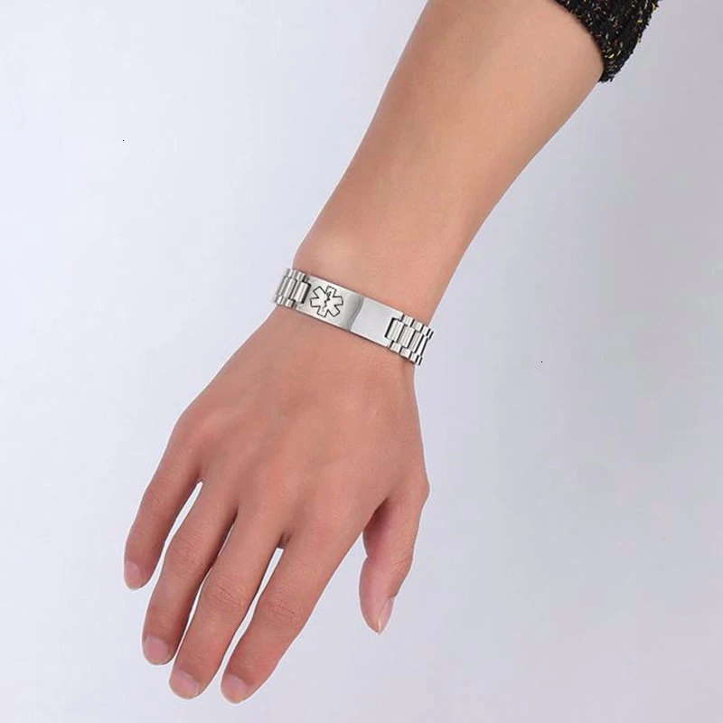 Мужские массивные медицинские браслеты из нержавеющей стали, антиаллергенные, с гравировкой имени на заказ, экстренная контактная информация, подарки для ухода