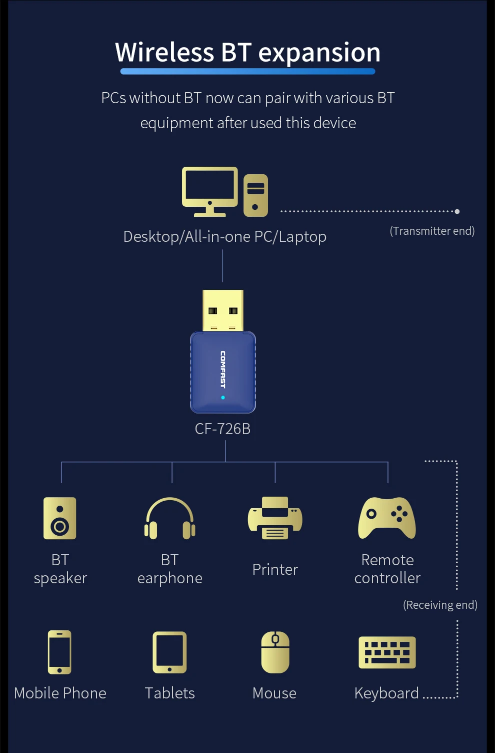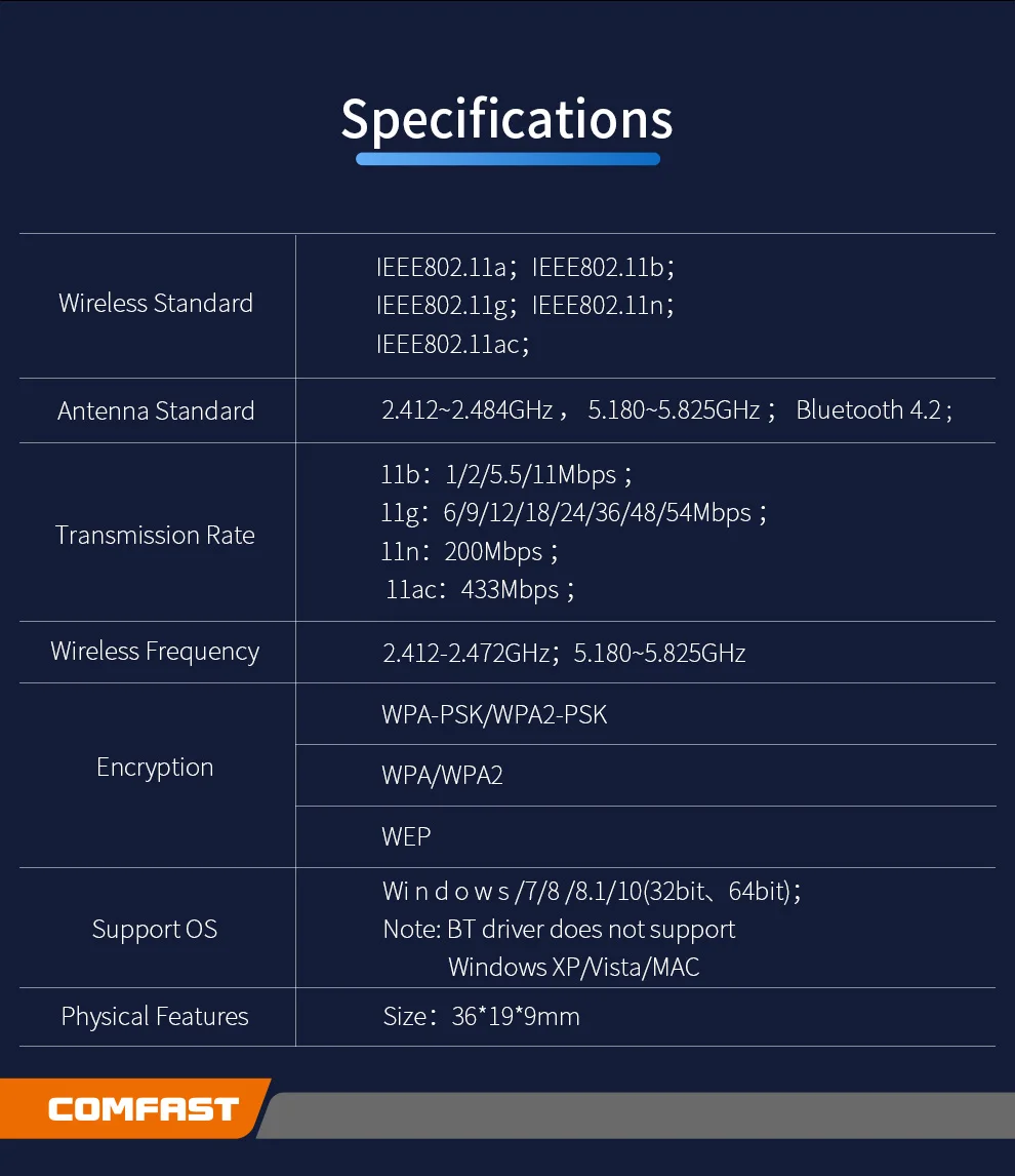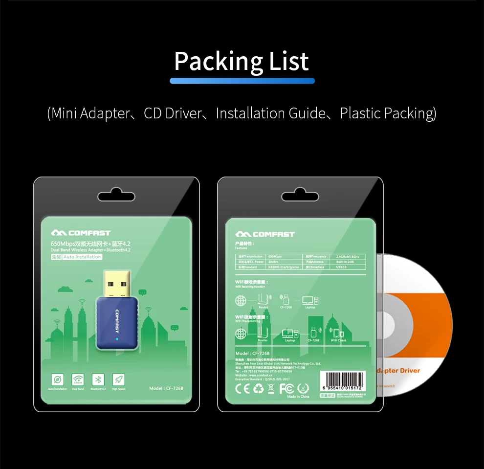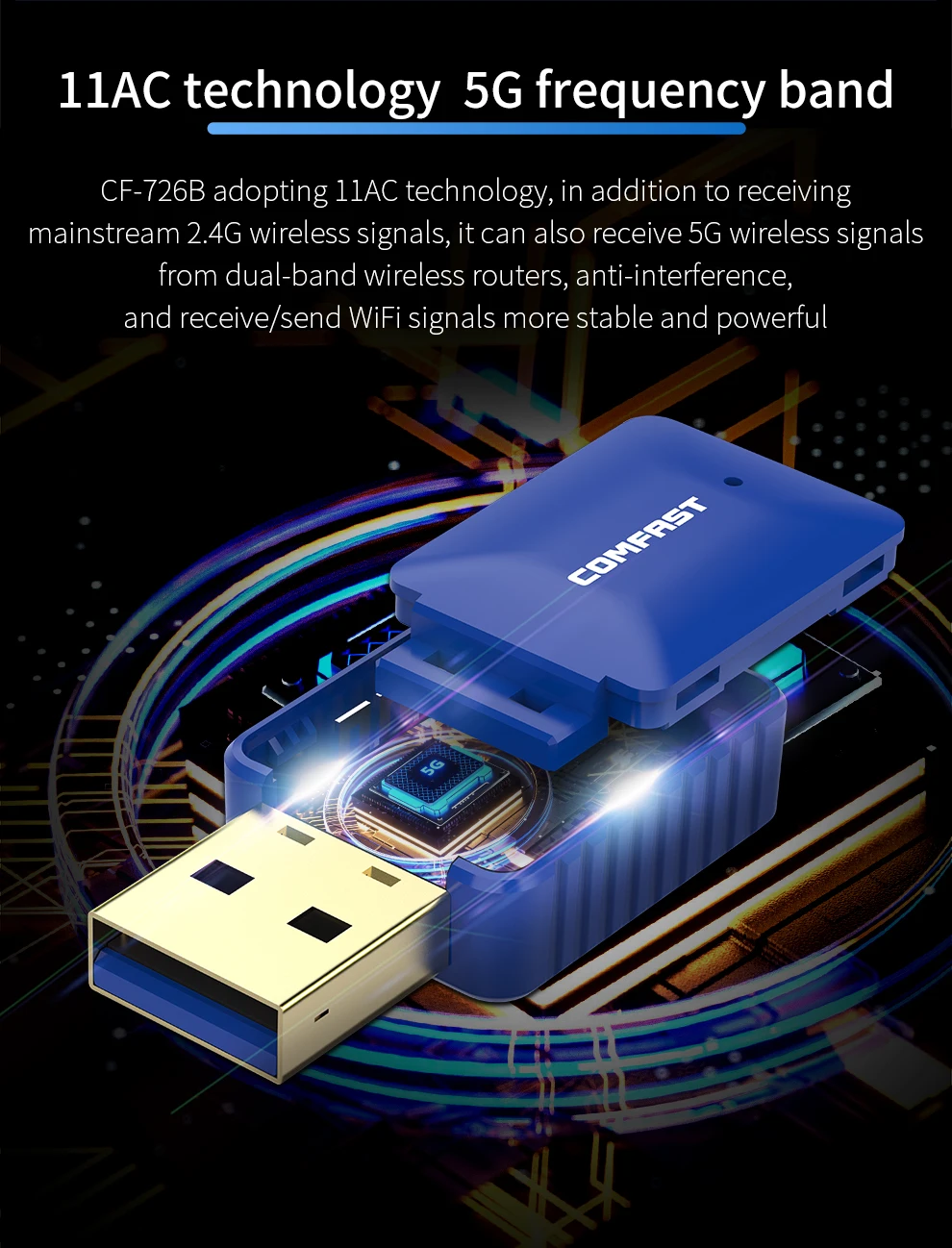 Comfast CF-726B USB WiFi адаптер 650 Мбит/с Wifi приемник 5,8 ГГц беспроводная сетевая карта bluetooth 4. 2 адаптер Wi-Fi модем
