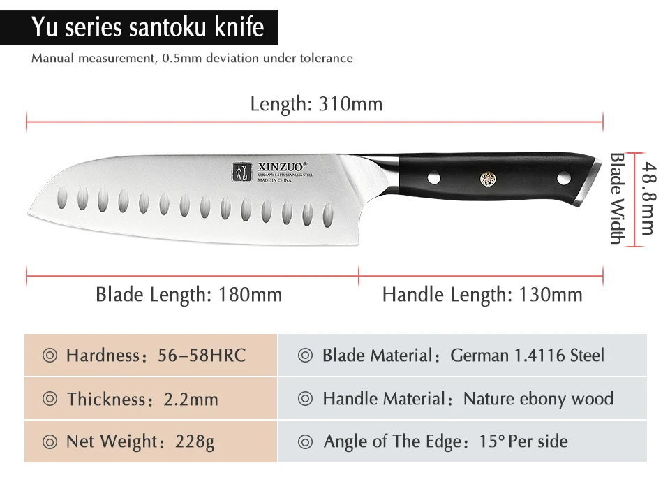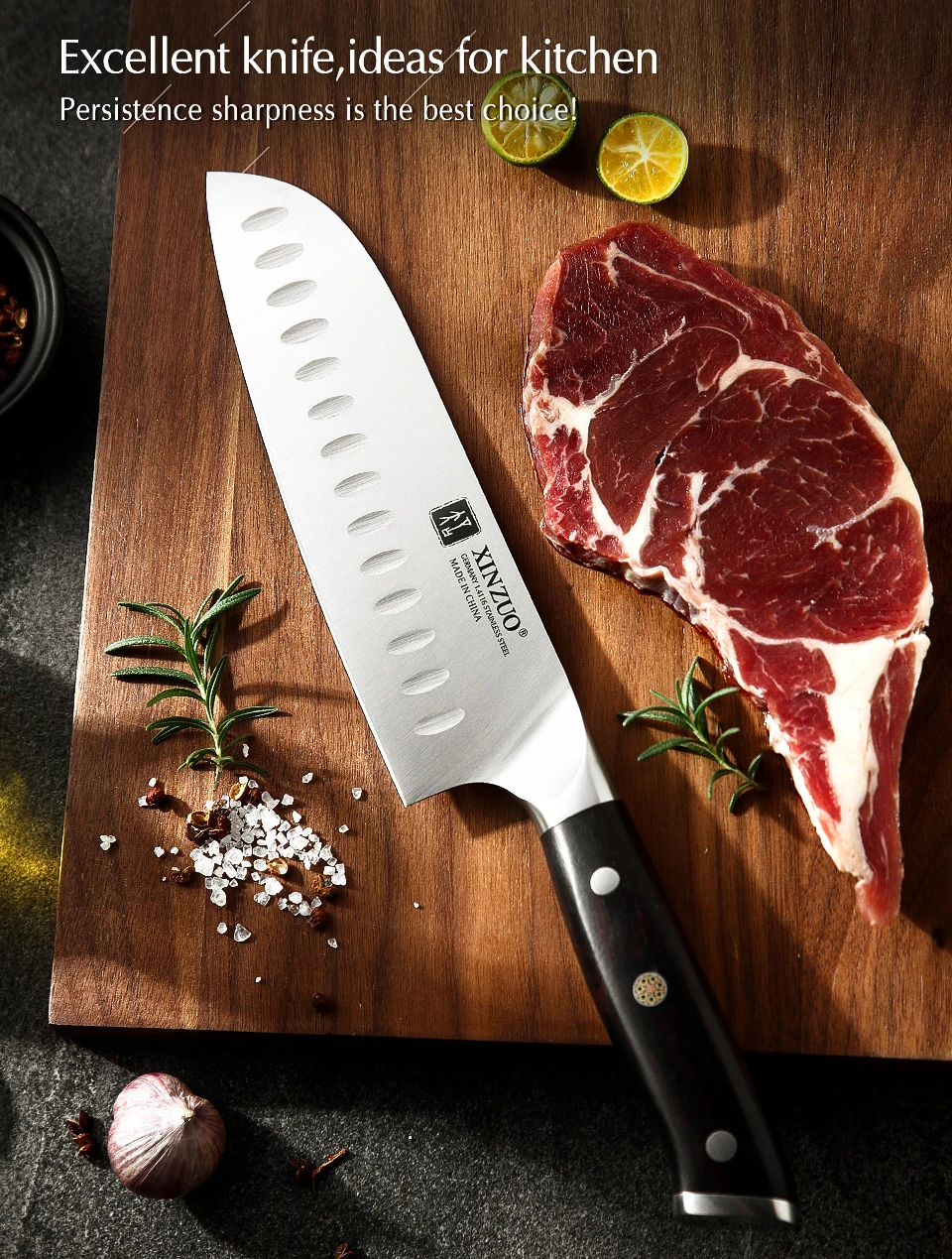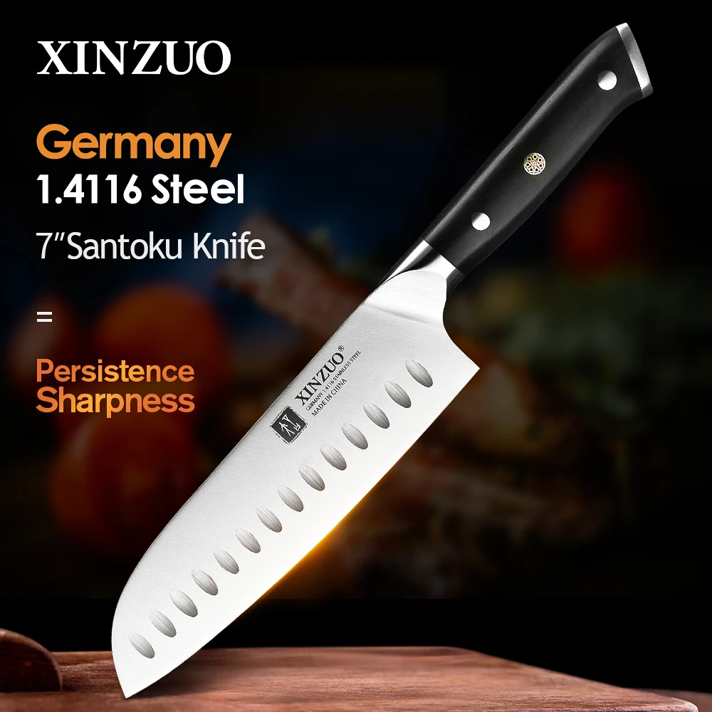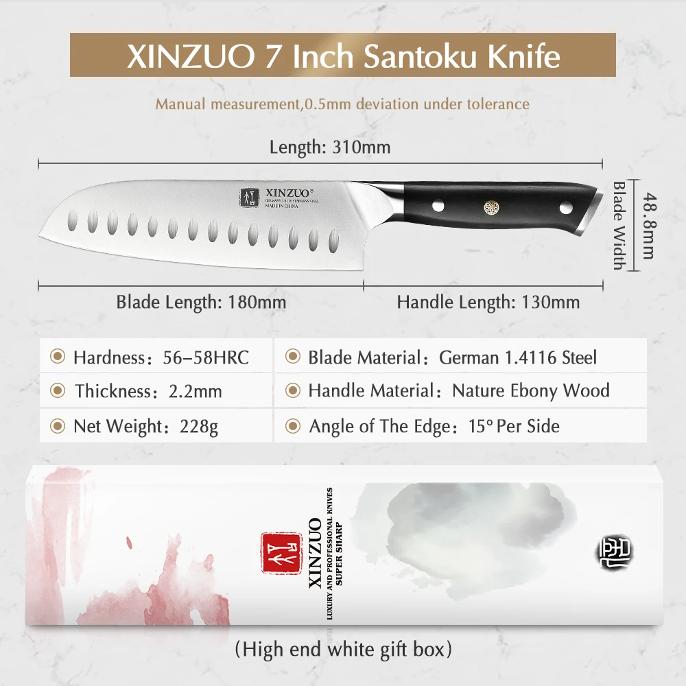 XINZUO 7-дюймовый нож сантоку DIN 1,4116, нержавеющая сталь, немецкий кухонный нож, супер острый, Лучшие ножи, черная ручка, подарочные ножи