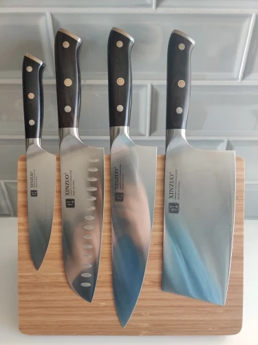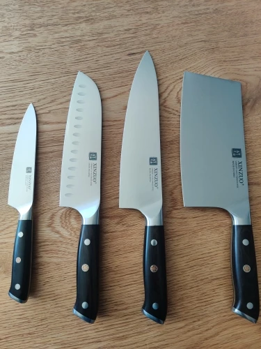 Набор поварских ножей XINZUO Santoku, 4 шт., высокоуглеродистые, Din 1,4116, из нержавеющей стали, с черной ручкой