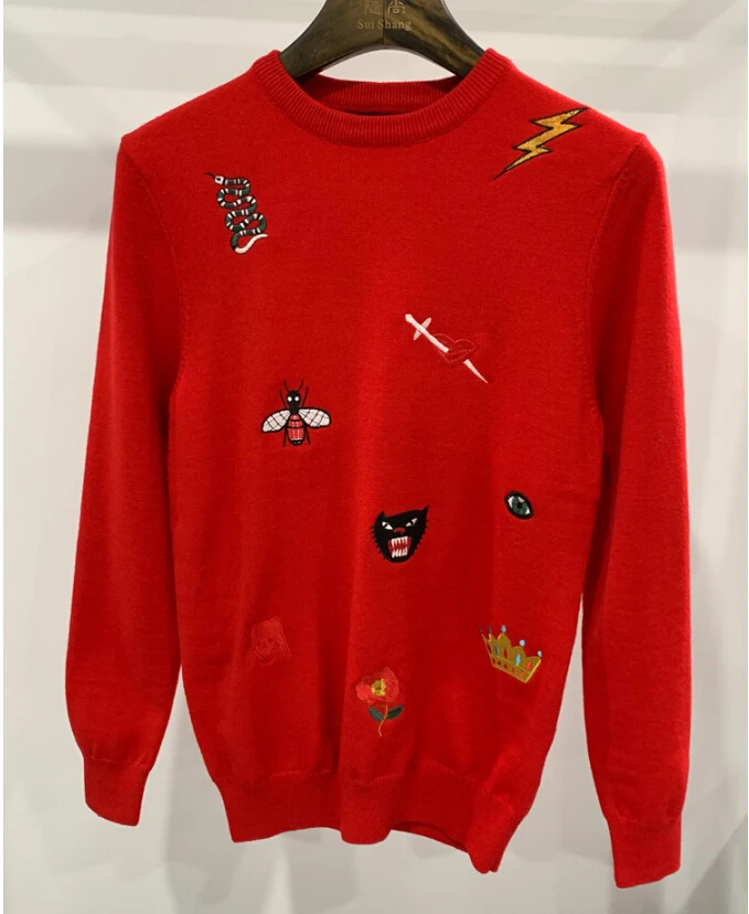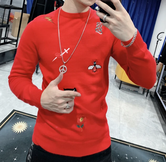 Свитер Мужской трикотажный, с круглым вырезом, на осеньзиму