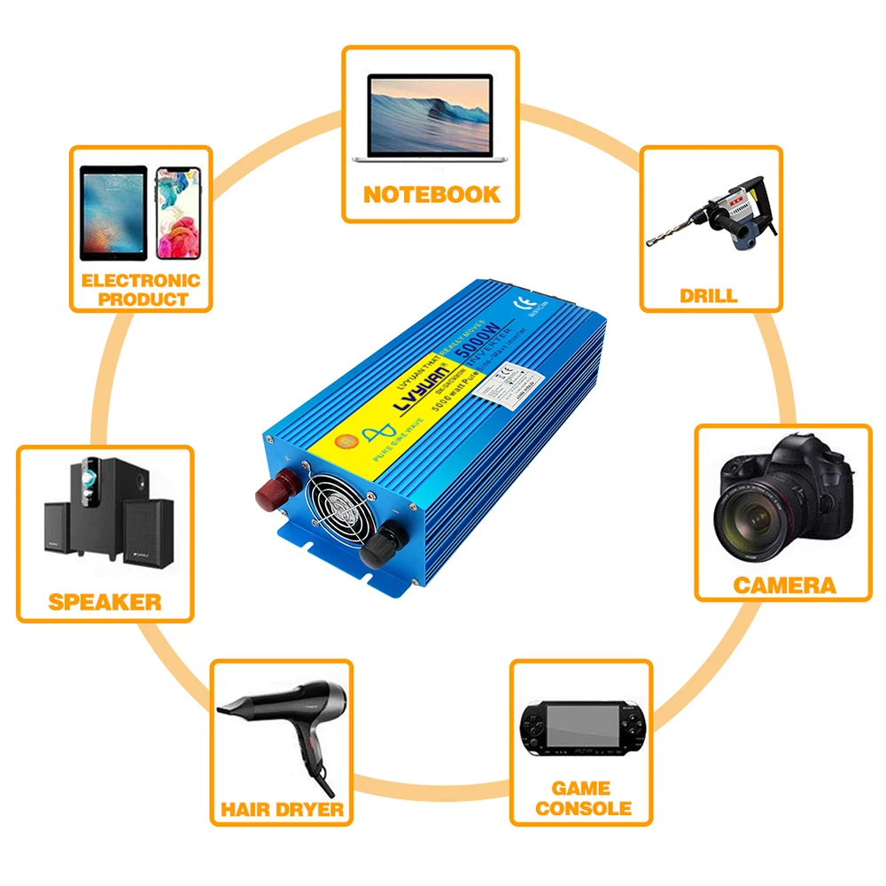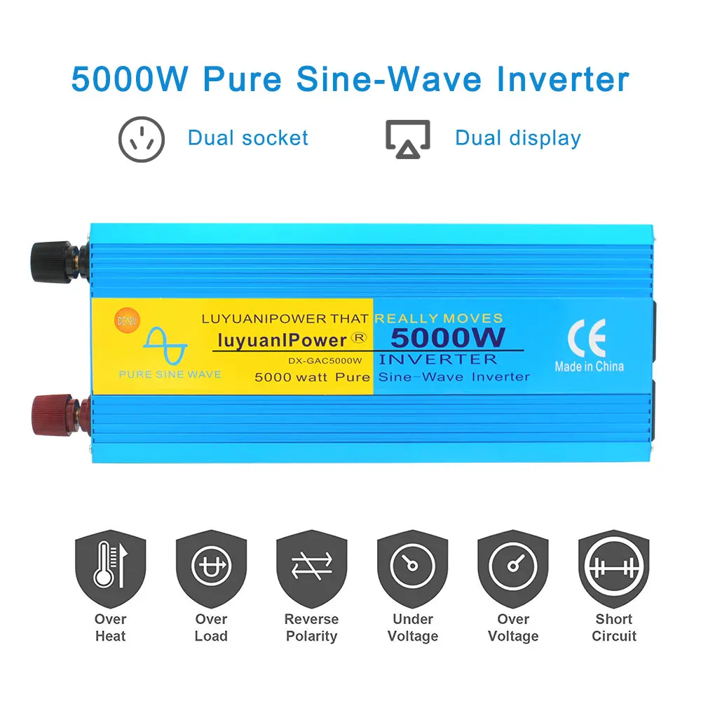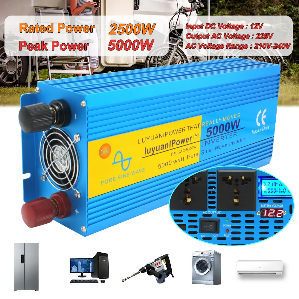 5000 Вт Двойной ЖК-дисплей пиковый инвертор немодулированного синусоидального сигнала EU Universal Socket DC 12 В AC 220 В230 В домашнийВыходной инвертор
