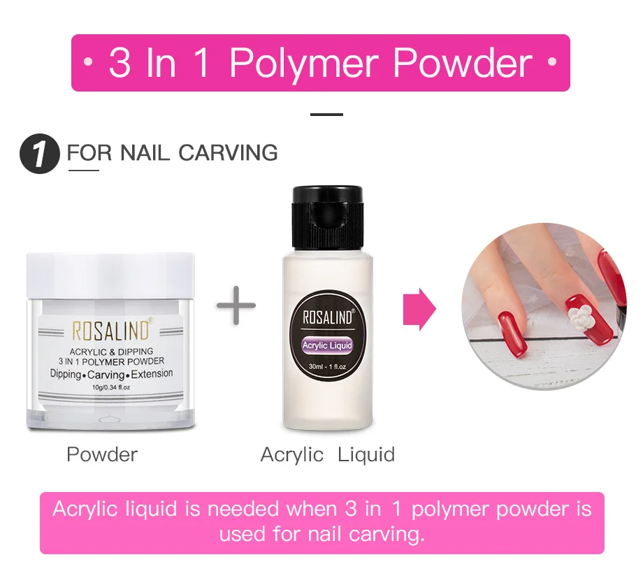 ROSALIND 3 в 1 порошок кристалл акриловый порошок окунания порошок художественные дизайнерские украшения