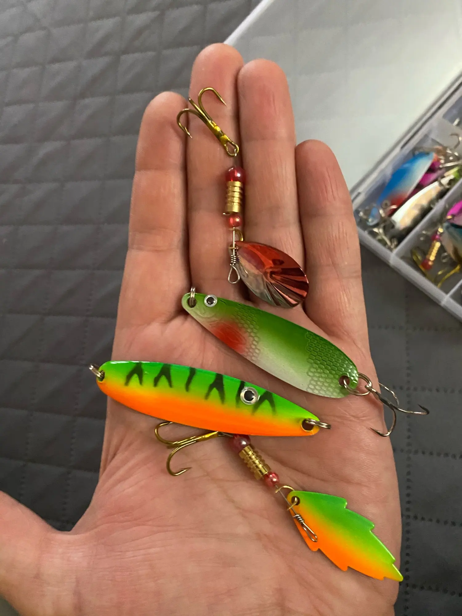 Блесны точно соответствуют описанию. Они выглядят нормально, невозможно проверить прямо сейчас из-за льда на озерах.