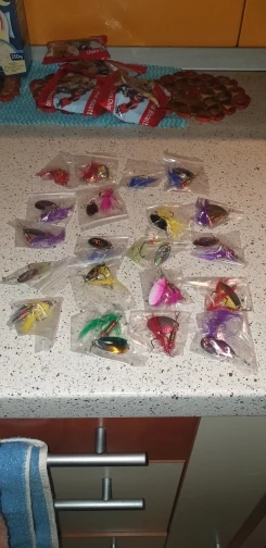 чесно скажу что на эти блесна и вертушки малька ловить больше половины можно смело выкинуть по цветам и по размерам .очень недоволен .Лучше пойти в своем микрораене и купить все что надо подобрав и размер и вес пусть их будет штук 5-10 но хорошее чем 20 штук но гавно эти наборы деньги на ветер .