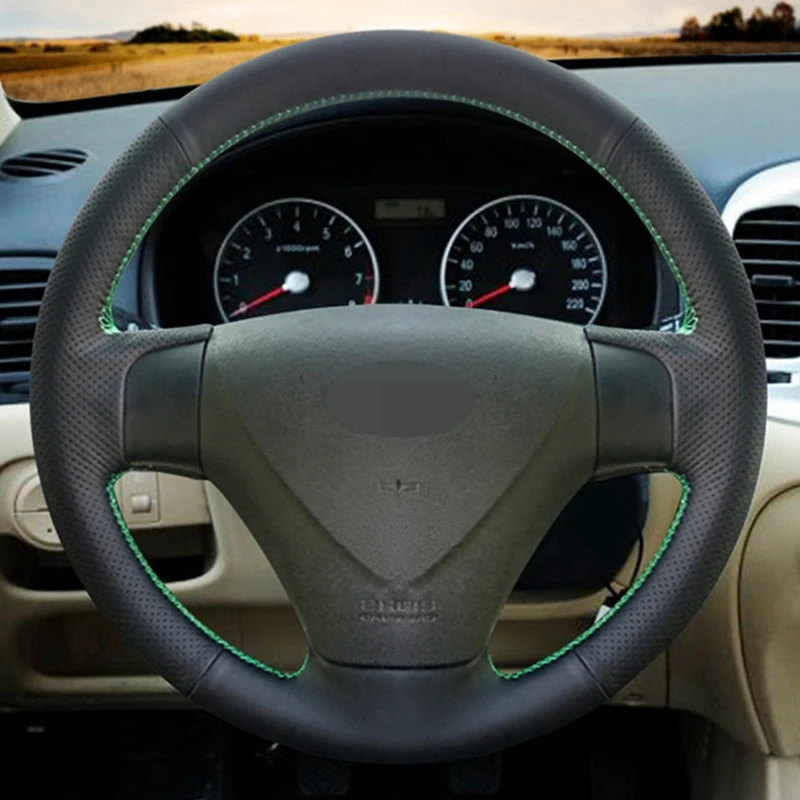 DIY черный чехол рулевого колеса автомобиля из искусственной кожи для Kia Rio Rio5 Hyundai Getz (Facelift) 2005-2011 Accent 2006-2011