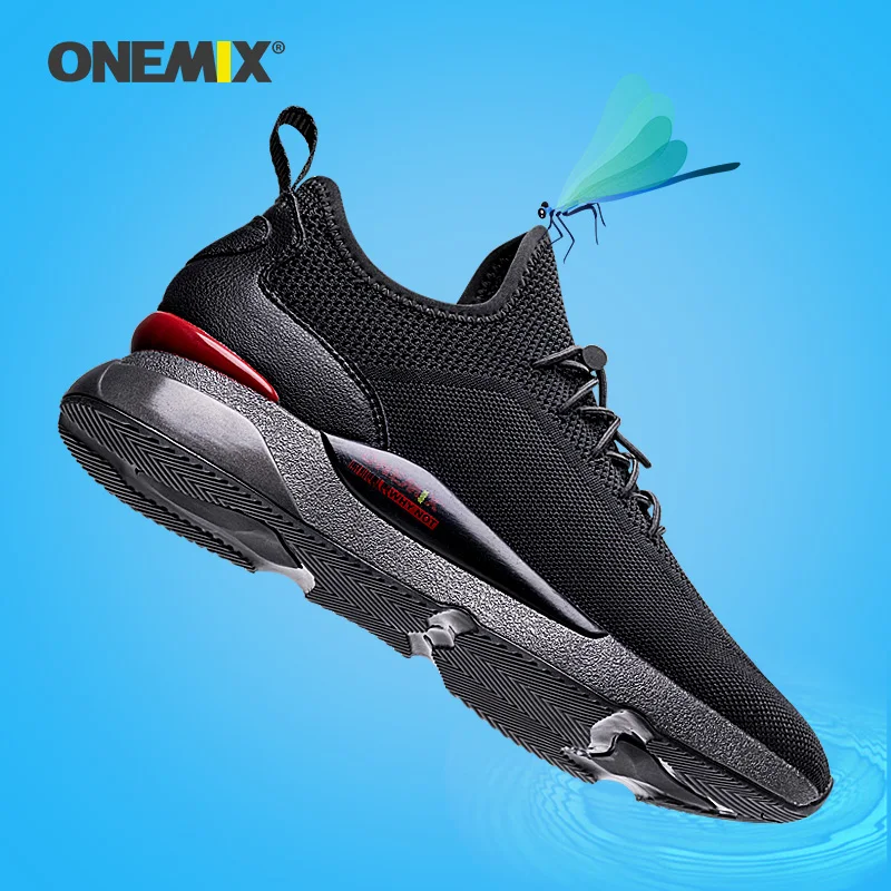ONEMIX мужские кроссовки, светильник для бега, прогулки, Уличная обувь, мужская воздушная подушка, сетчатый светильник, кроссовки, черные, зимние спортивные кроссовки