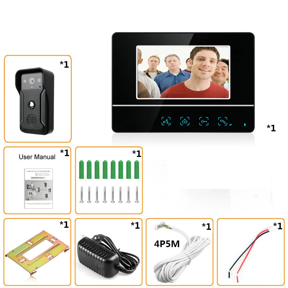Видеодомофон проводной дверной звонок, видеодомофон, 7-дюймовый цветной монитор и HD-камера с разблокировкой дверей, сенсорная кнопка