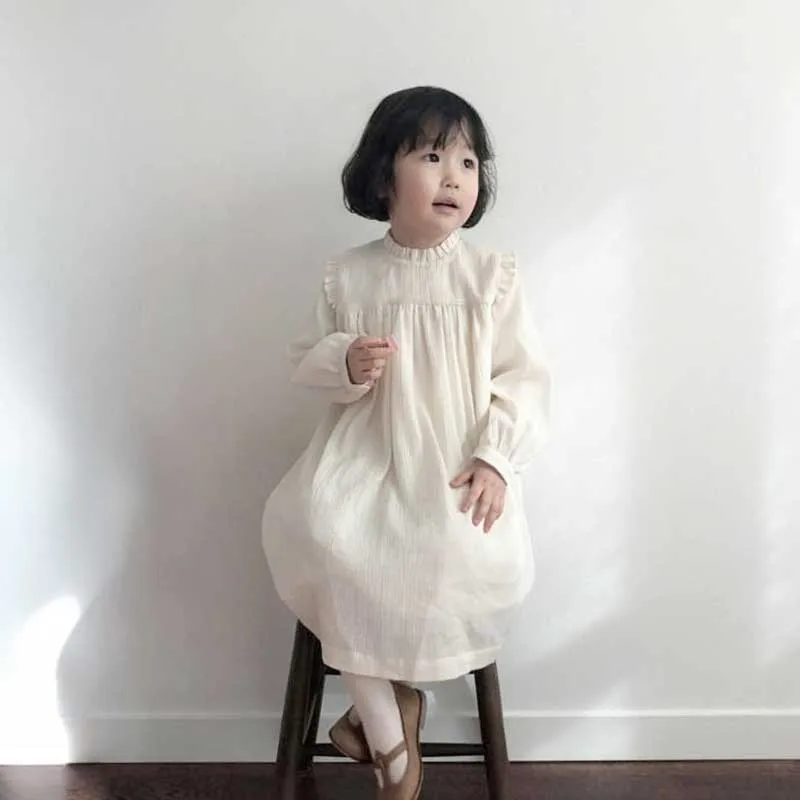 Осеннее платье с длинными рукавами для маленьких девочек; платье для маленьких девочек; льняное платье с оборками; осенняя одежда принцессы; брендовая хлопковая одежда; коллекция 2019 года; японский стиль