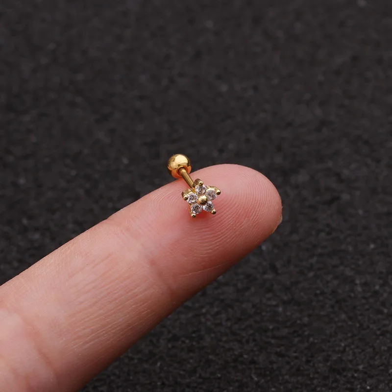 Серьги-гвоздики из нержавеющей стали в виде звездочек, змей, цветов, сердечек, ушной хрящ, 1 шт.