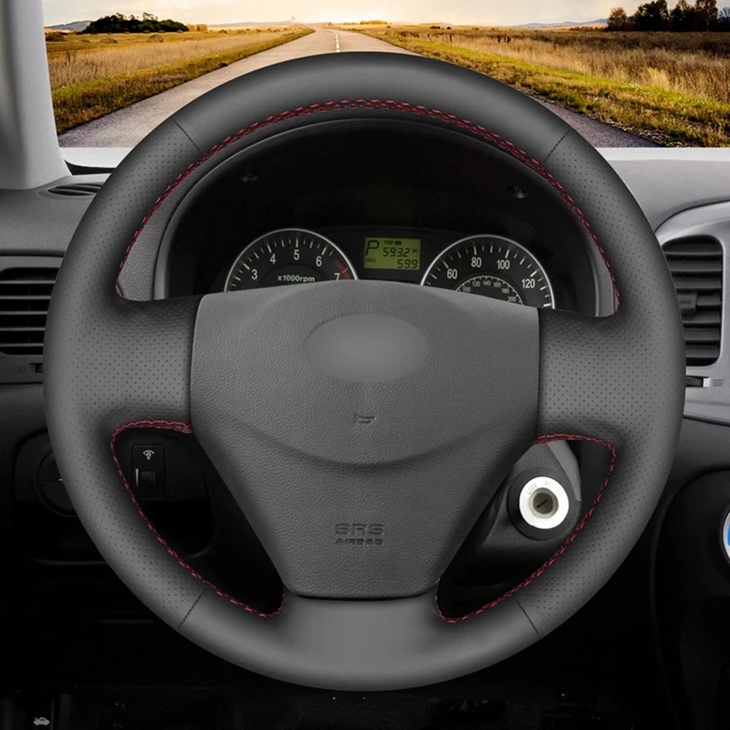 Черная искусственная кожа Чехол рулевого колеса автомобиля для Kia Rio Rio5 Hyundai Getz (Facelift) 2005-2011 Accent 2006-2011