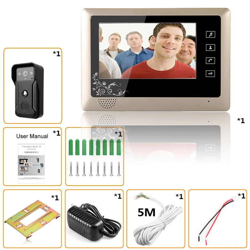 Видеодомофон, проводной дверной звонок, видеодомофон с 7-дюймовым цветным монитором и камерой HD 1000TVL с разблокировкой двери, сенсорная кнопка