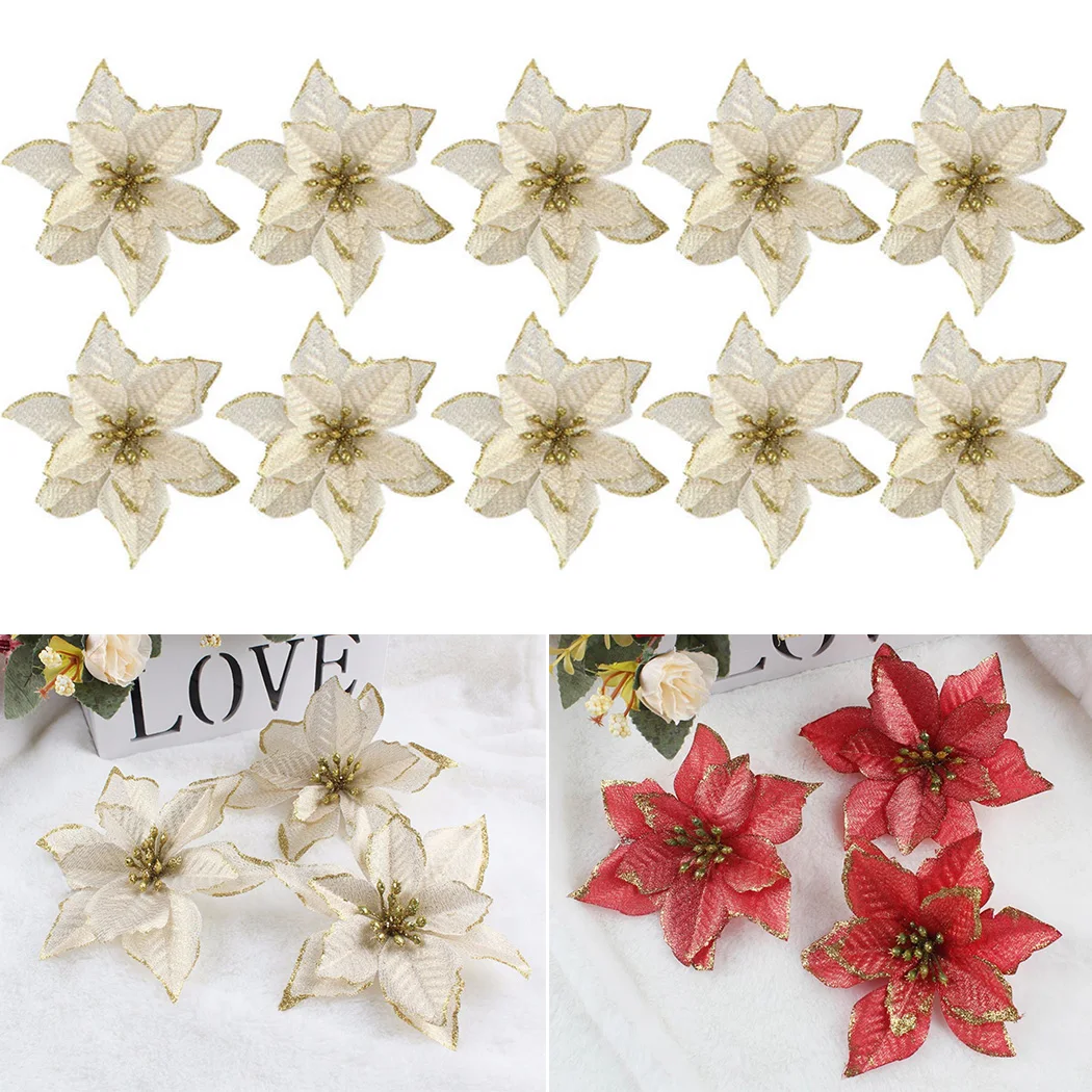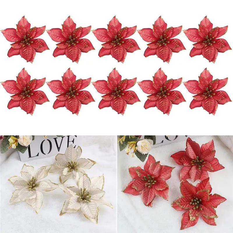 10 шт., Декоративные искусственные цветы для новогодней ёлки