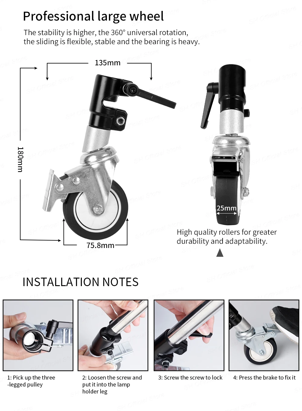 C-stand специальное колесо подходит для ножек диаметром 25 мм.