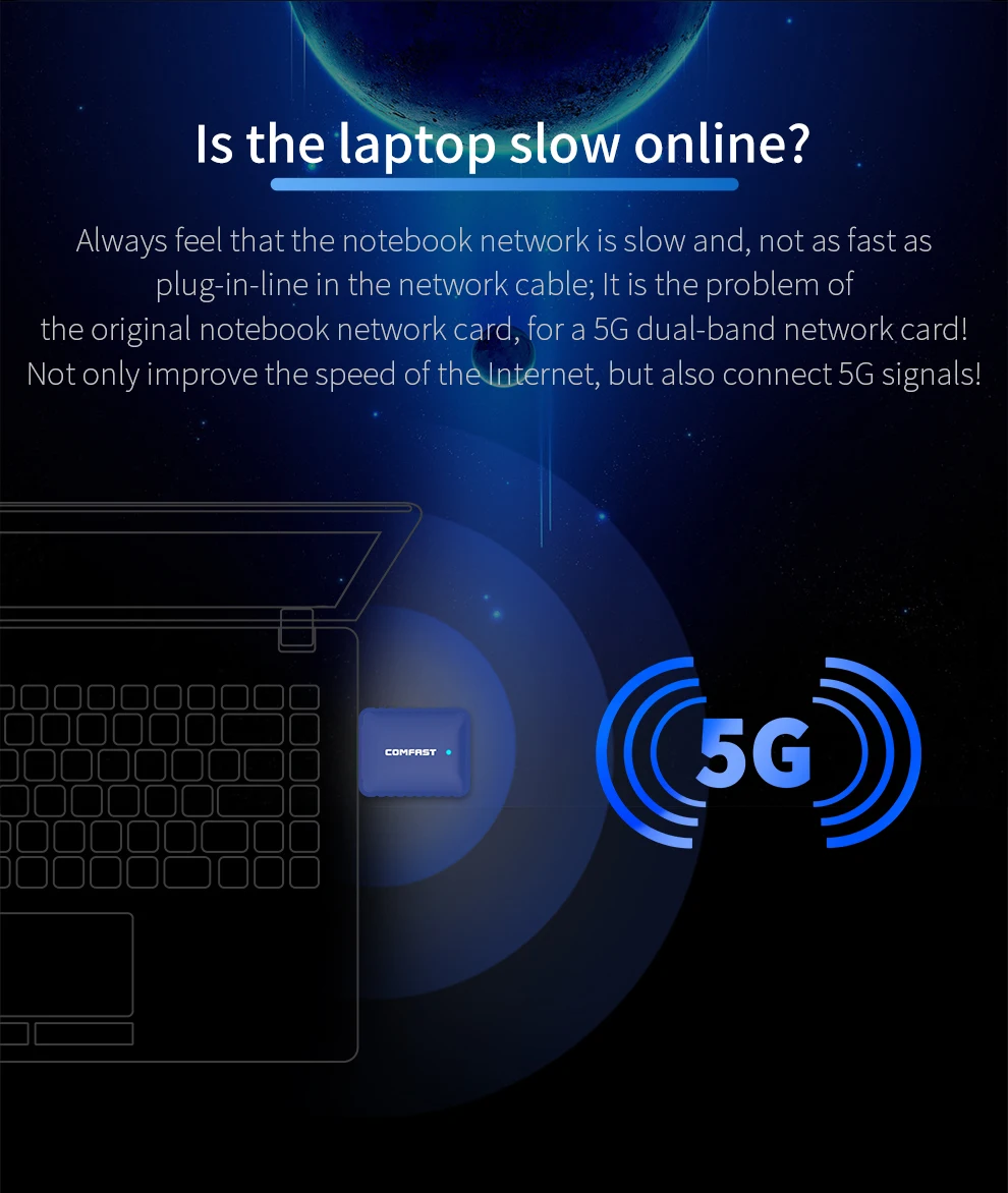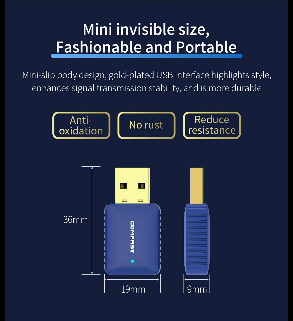Беспроводной Wi-Fi-адаптер, 5 ГГц, 650 Мбитс, двухдиапазонная антен...