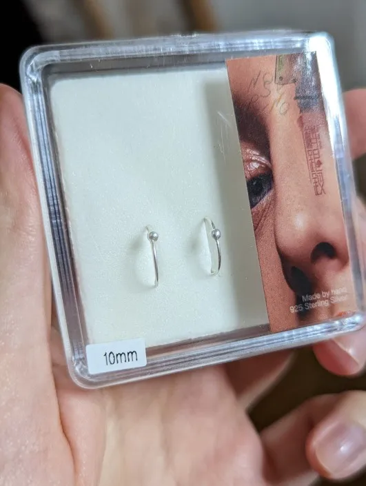 Все в порядке, соответствует размеру. Очень красивый, тонкий-идеально подходит для ноздрей. Только время покажет, если Настоящее серебро и не изменит цвет.
