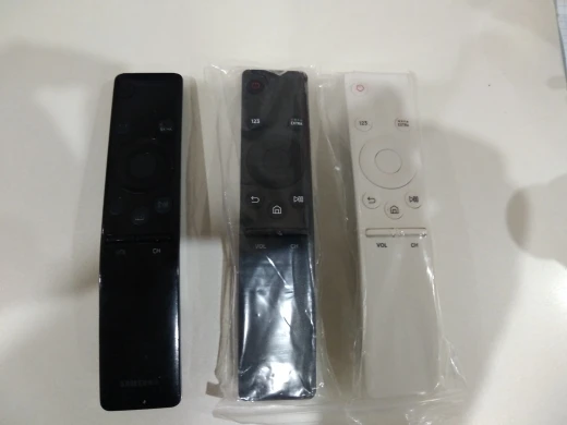 Получил пакетик с тремя пультами через 28 дней из Китая. Заказал 2 чёрных и 1 белый. Все пульты работают отлично, с телевизорами как родные. Кнопки нажимаются легко, считываются нажатия без задержки. Исполнение дешевенькое, на фото посередине лежит оригинальный самсунговский пуль для сравнения. Скопирован хорошо, пластик немного шершавый и светлее оригинала.