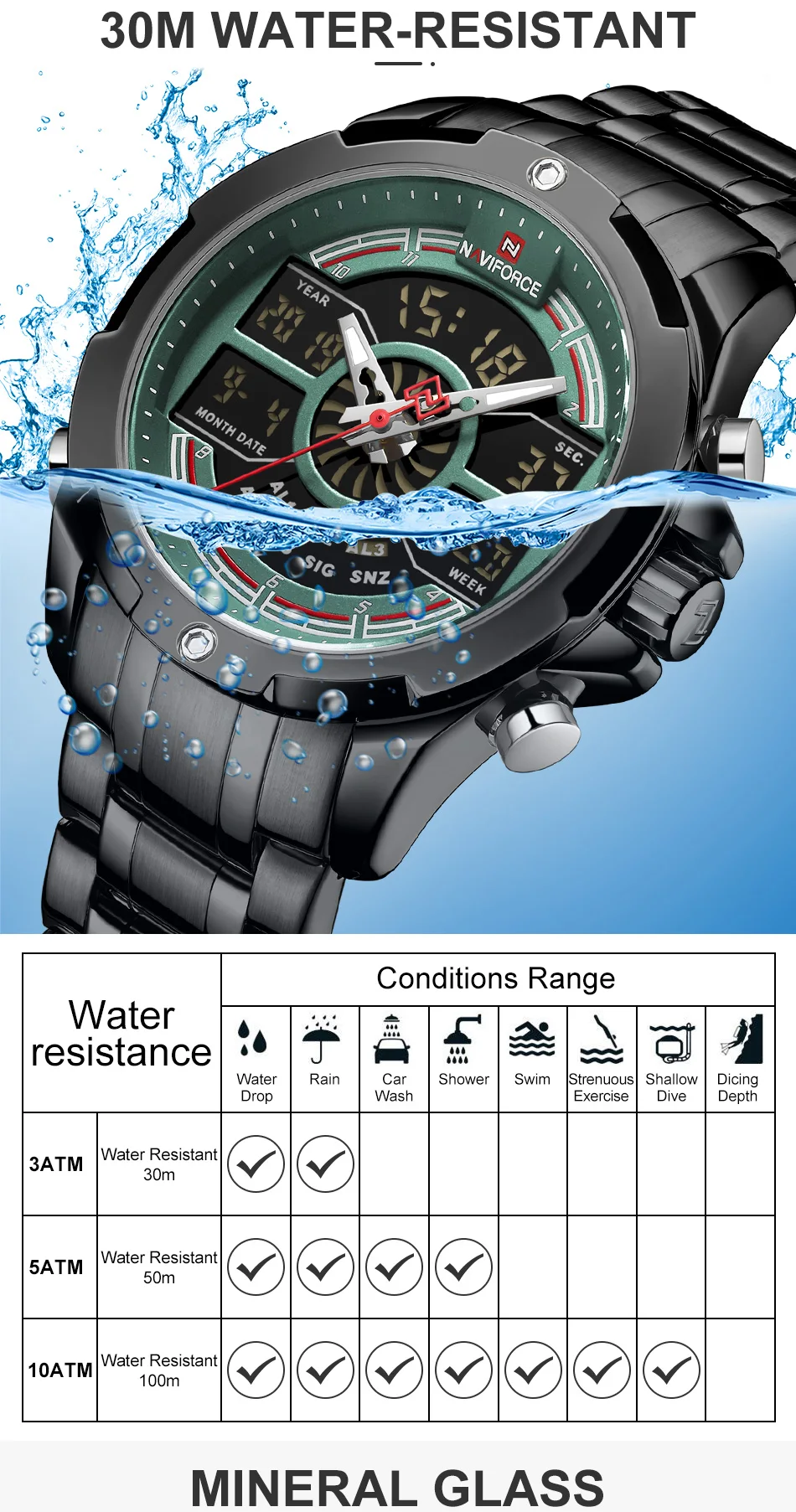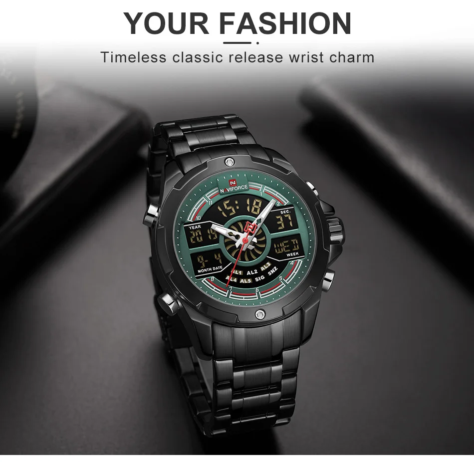 Часы наручные NAVIFORCE Мужские кварцевые, роскошные брендовые водонепроницаемые деловые армейские модные в стиле милитари