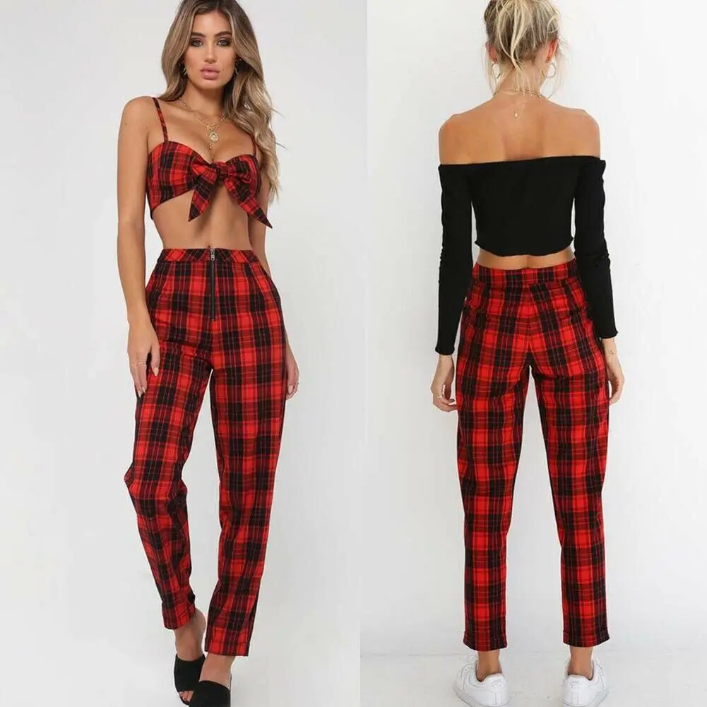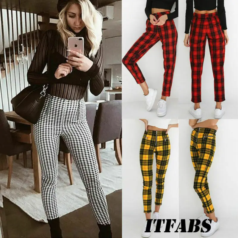Классические клетчатые брюки, женские узкие джинсовые штаны на молнии, офисные повседневные джеггинсы с высокой талией, брюки-карандаш, уличная одежда