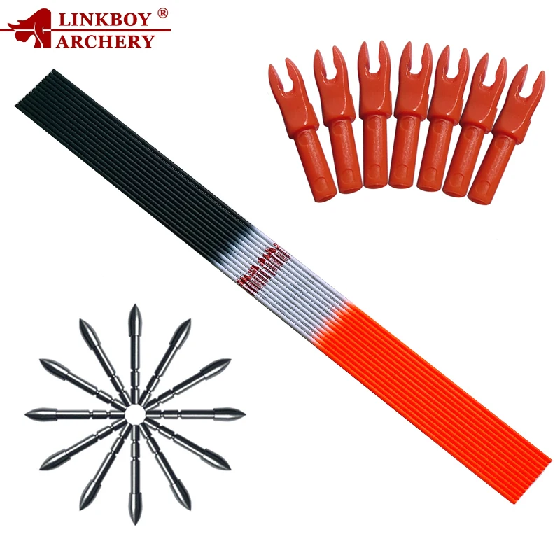 12 шт. Linkboy карбоновые стрелы для стрельбы из лука вал sp600-1000 ID4.2mm стрела Nock 80gr Советы DIY Аксессуары изогнутый лук съемки