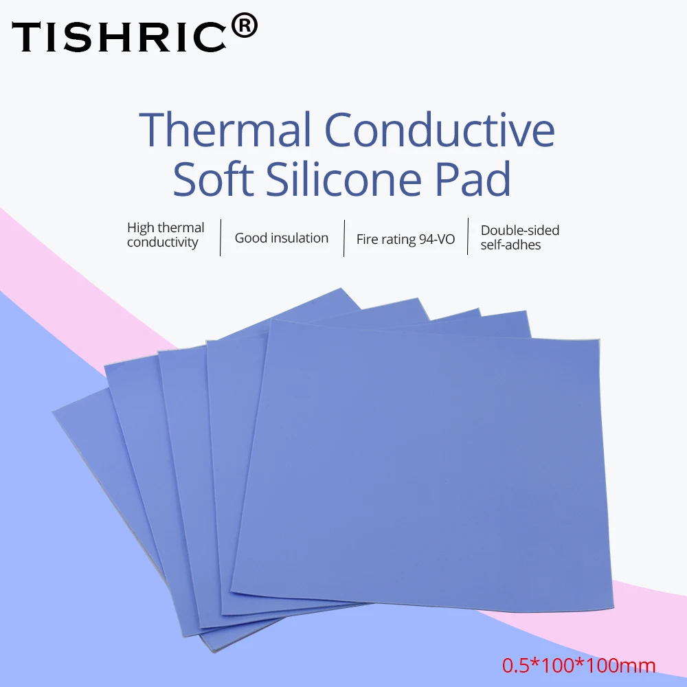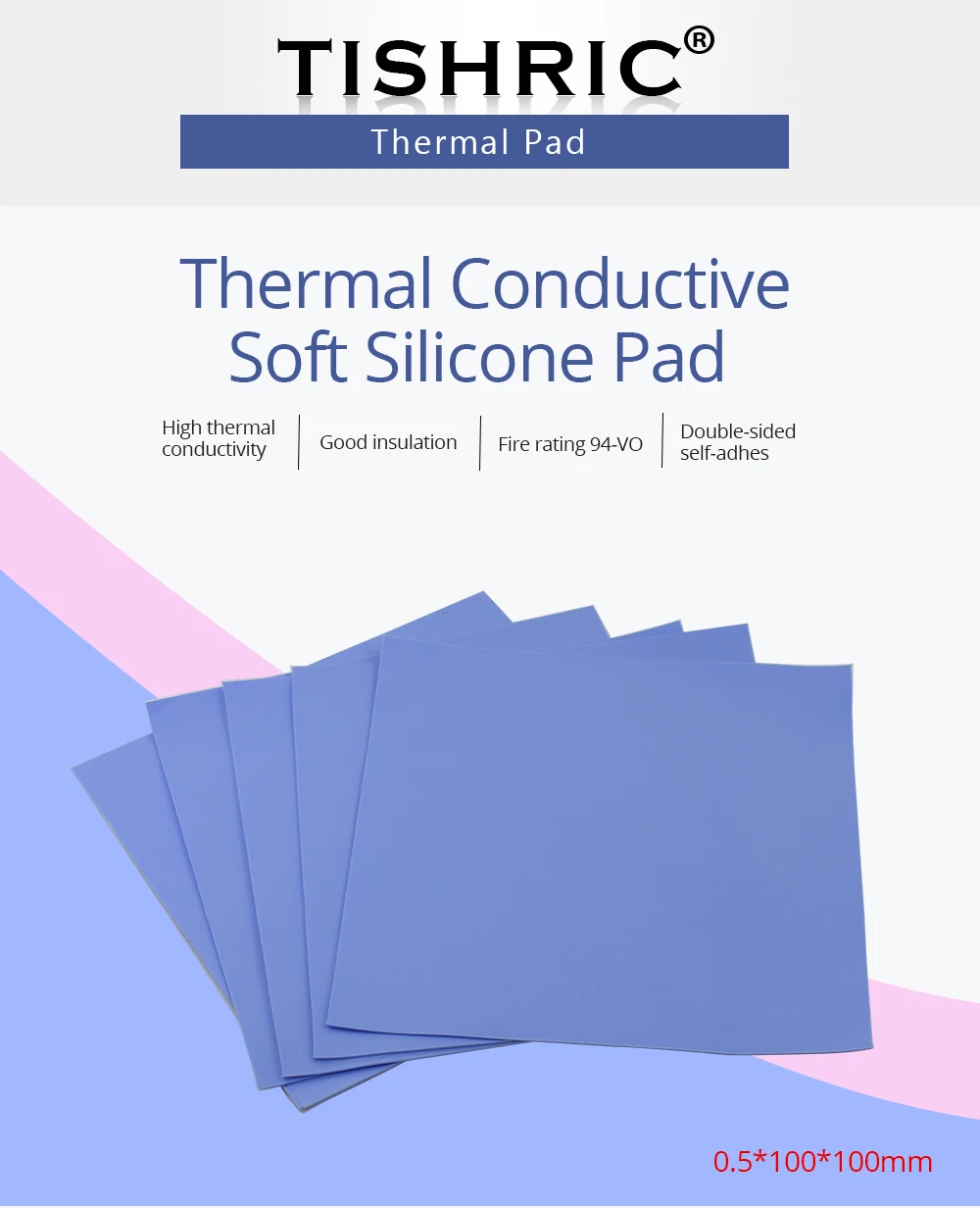 Термопрокладка TISHRIC 100 мм * 100 мм * 0,5 мм 1 мм 1,5 мм 2 мм, отрезаннаяне отрезанная термопрокладка для кулера ЦП, охлаждающий проводящий вентилятор, радиатор, силиконовая прокладка