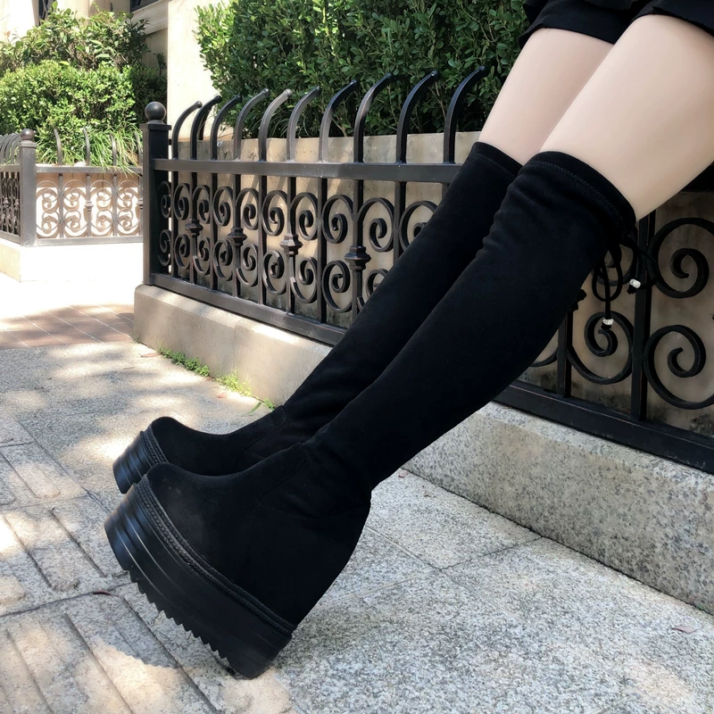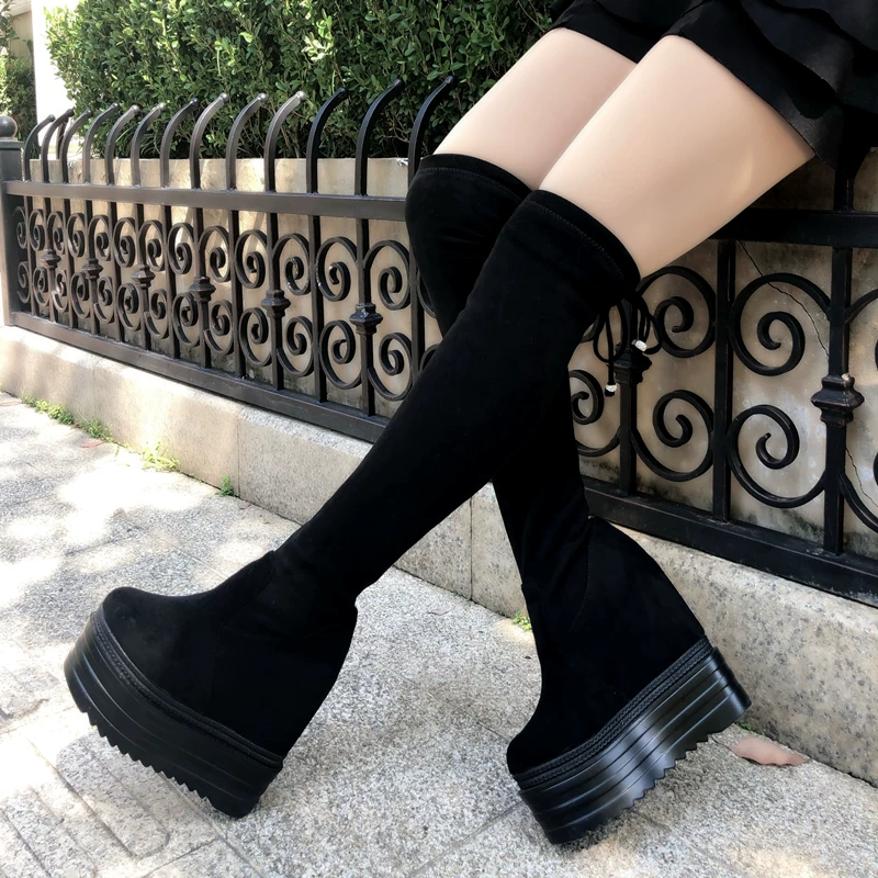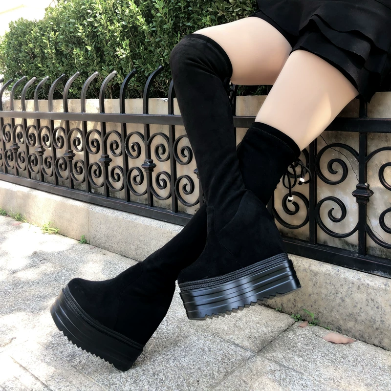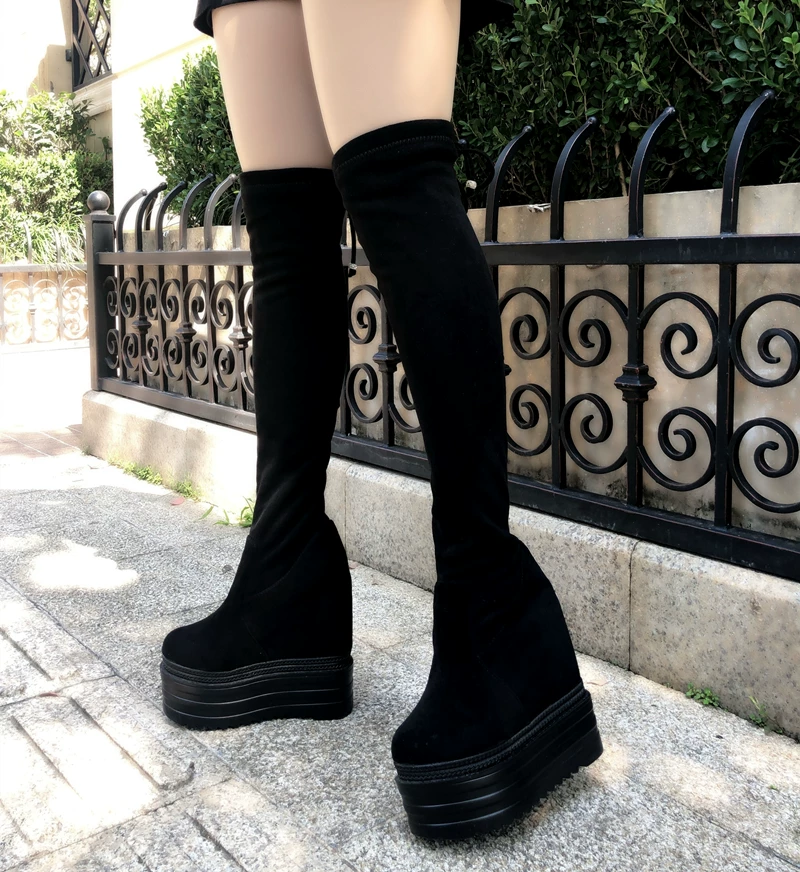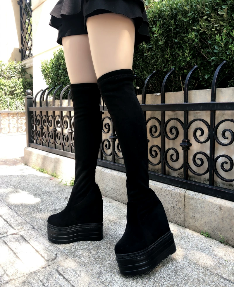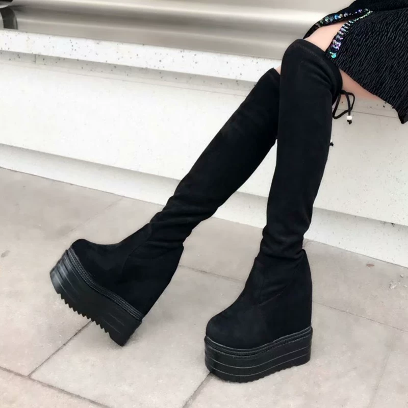 Сапоги-мартинсы на очень высокой танкетке, замшевые, 2019